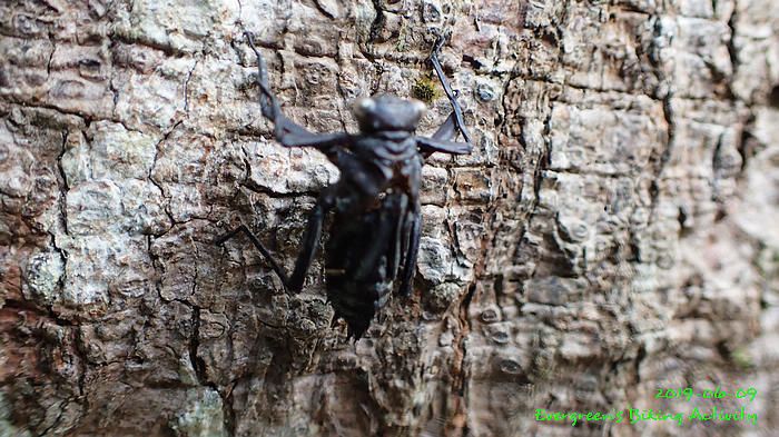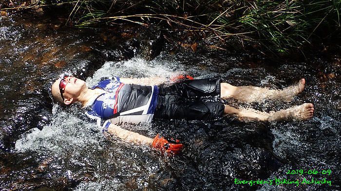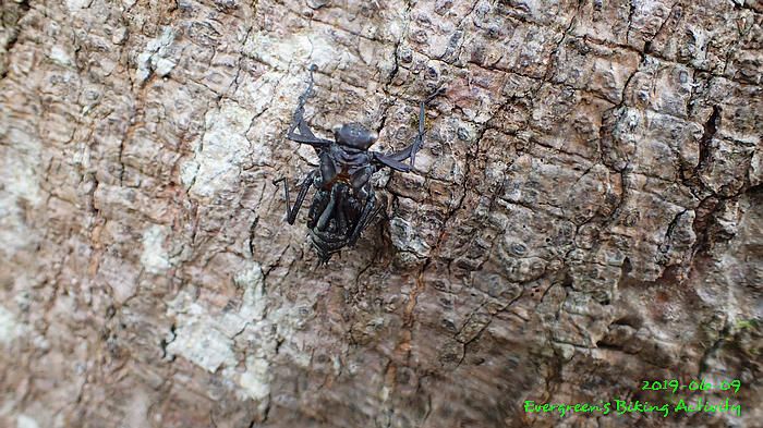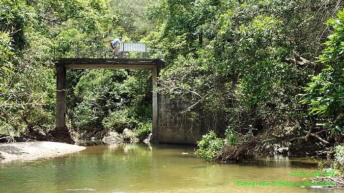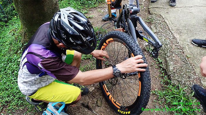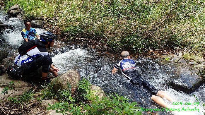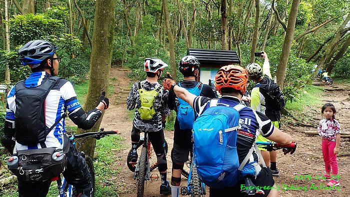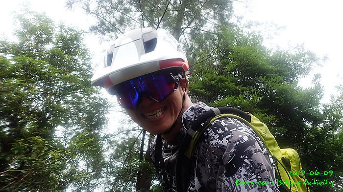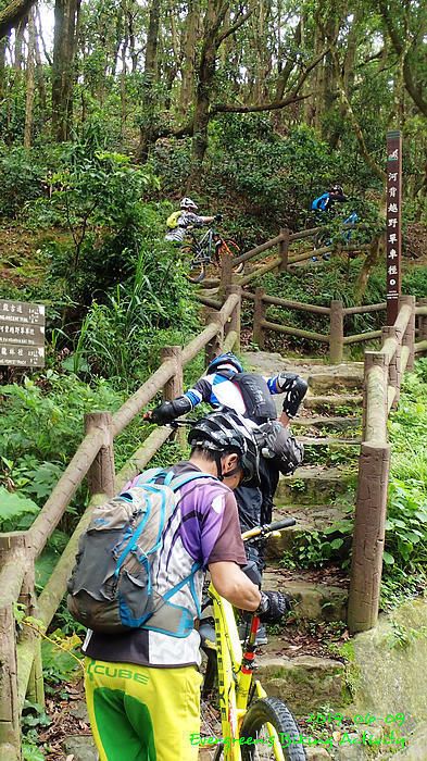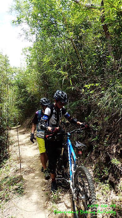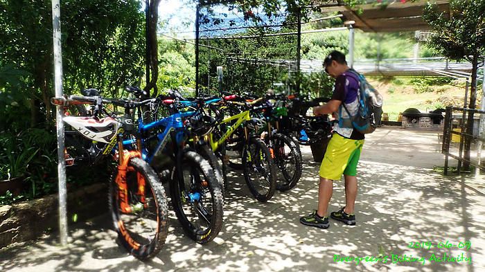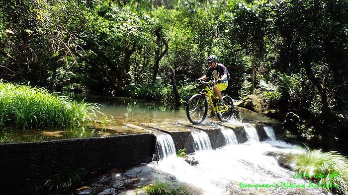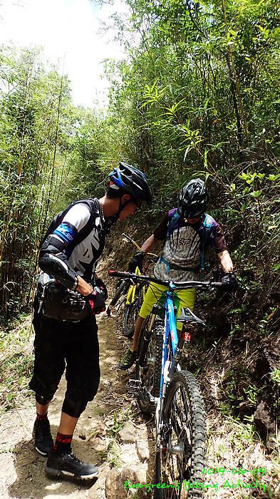 路線方面,大家也沒什麼意見,我提出:山徑濕滑,三上三落比較保險,於是就此決定。在林道騎行時,真的落起雨來,可是不似預期,天好黑,雨郤好細,一、兩分鐘就停了,到蓮花山廢校時,又是同樣情況的雨。但係到了第一個上坡,天色越來越好;往後的天氣,都是晴陰交替,微微涼風,稍稍舒緩炎夏的煎熬。