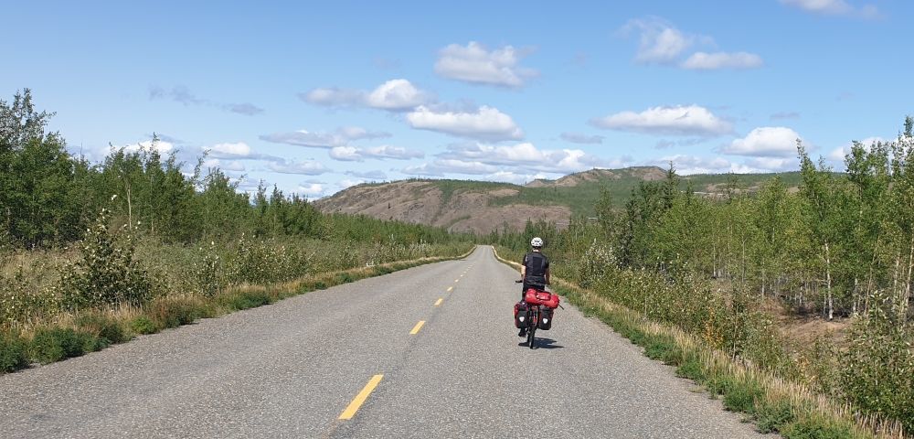 Cycling the Klondike Highway from Carmacks to Pelly Crossing, part of our cycling tour from Whitehorse, Yukon to Anchorage, Alaska via Dawson City.