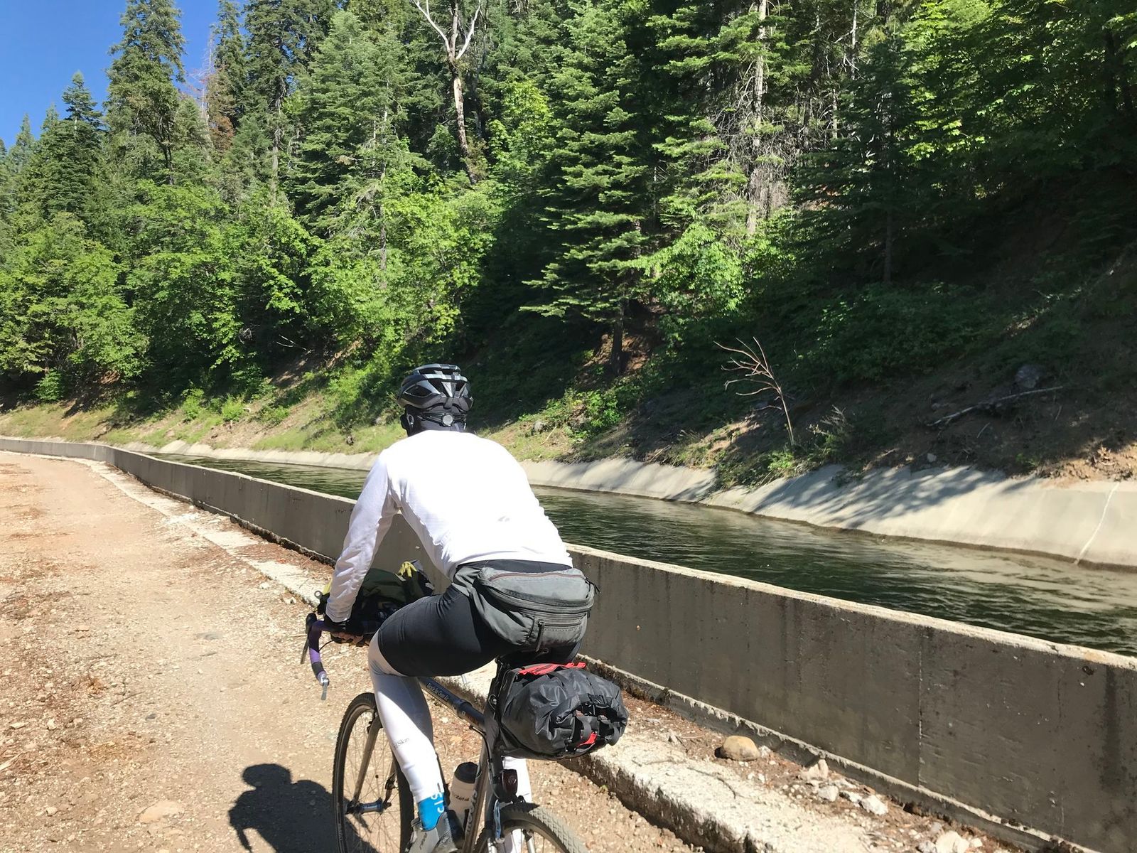 Trying to avoid riding the freeway. It was a very hot ride. Many stops along the way for water and food. Riding the Drum canals was interesting.