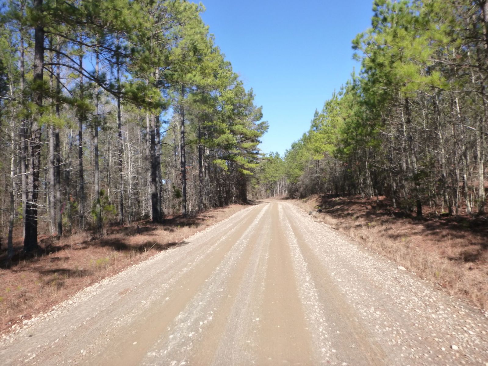Upper forties with 10-15mph NW wind. Did about 10-15 miles of gravel in Heard county, then visited an Indian Trail tree right off Hwy 34. It points due west.