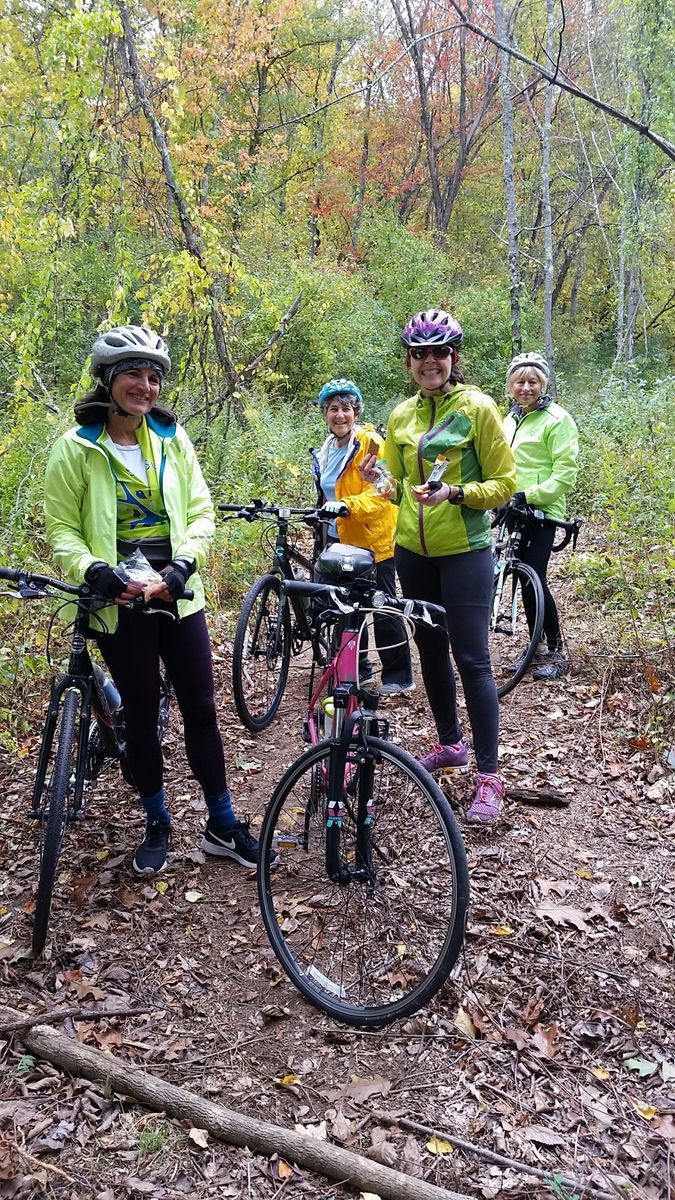 Eight intrepid riders headed northwest to avoid the nor'easter. No rain, no wind, no street debris, no worries! Rode through Assabet River National Wildlife Refuge, on the Assabet River Rail Trail (ARRT), along Lake Boon, and a stop at Honey Pot Hill Orchards for cider donuts. Some walking on an unintended trail and portage of bikes through a wooden fence.