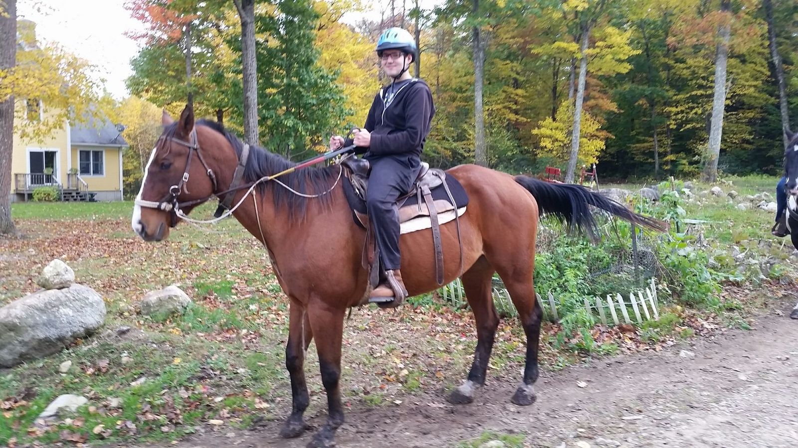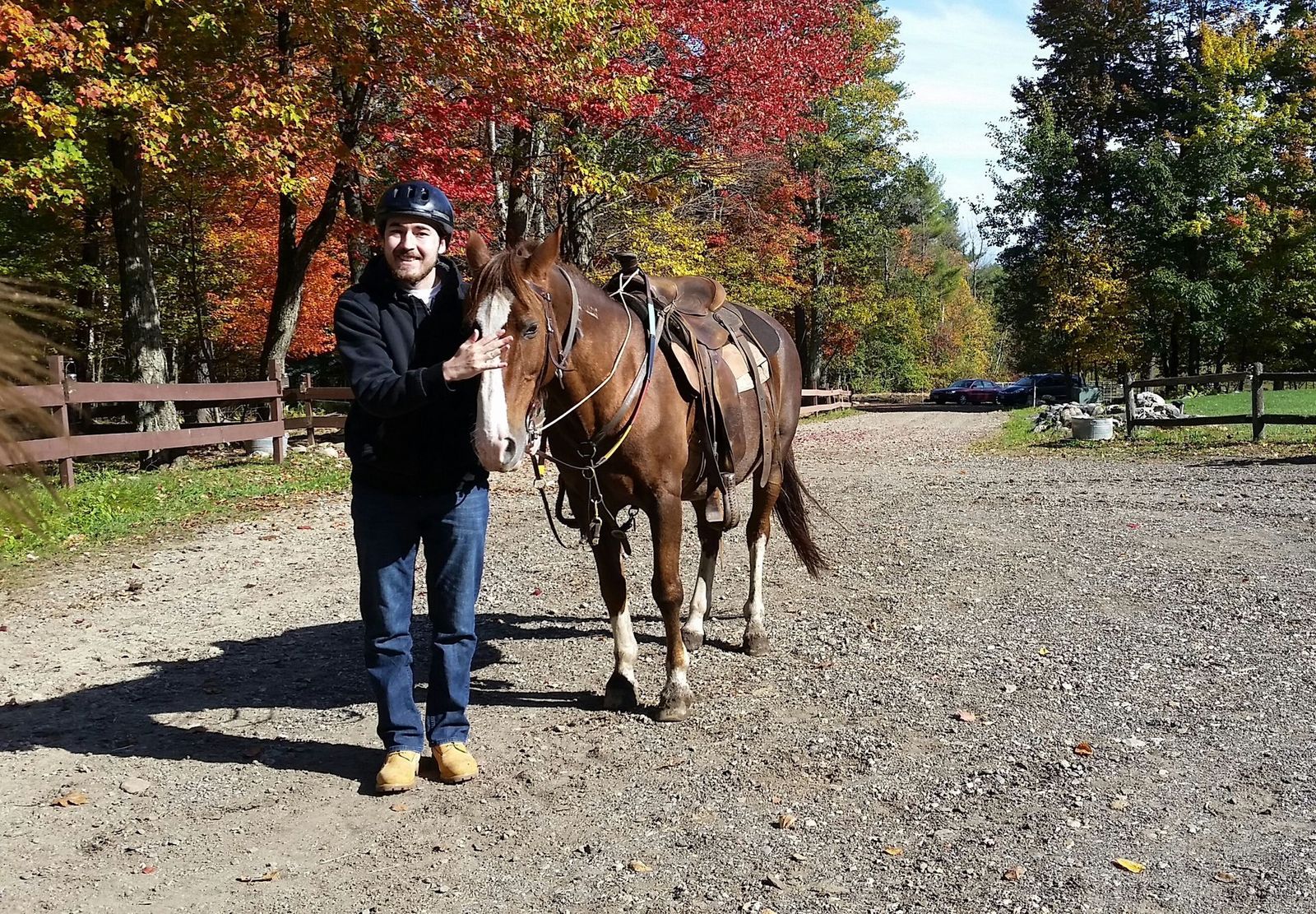 Beautiful weather & gorgeous folliage. Two hour trail ride with Hunter & Jacob. Giddyup!