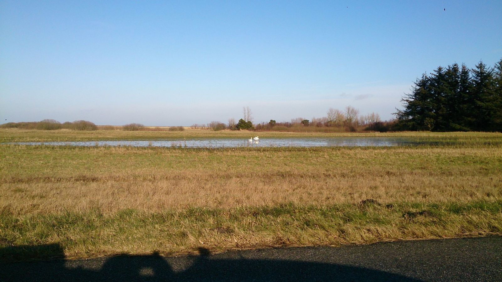 Large snowflakes and cold this morning. Later sun and "spring" with swans