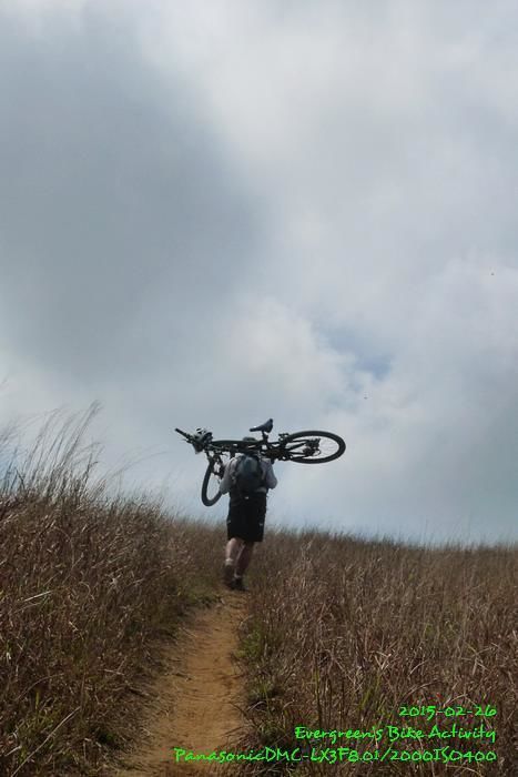 今天不以快速完成作目標,在扛車上雞公嶺時,每個高點停下的休息時間都比較長,因此用時約兩小時四十分鐘左右;我以往的時間約兩小時的。
