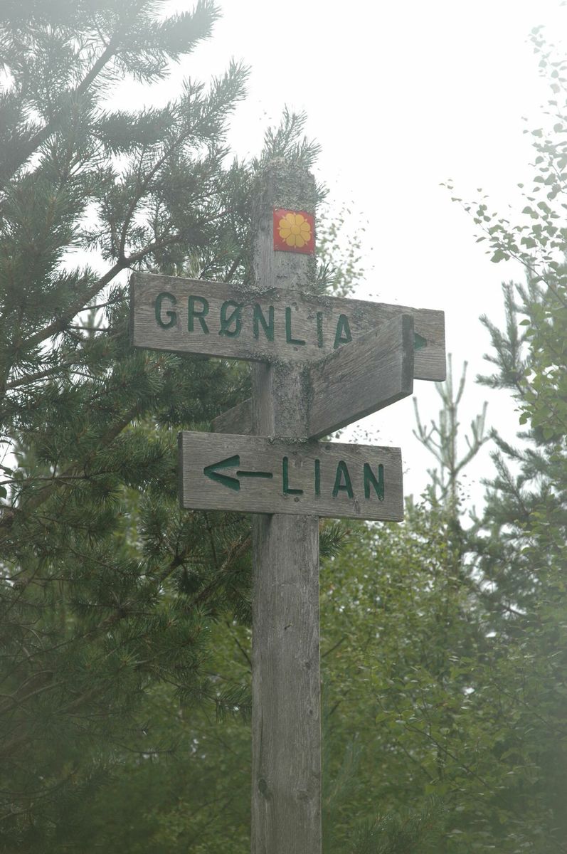 Herifra er det merket sti og vei mot Grønlia. Noen området kan det være litt dårlig merket, men stien forøvrig er flott opparbeidet og fin å gå.