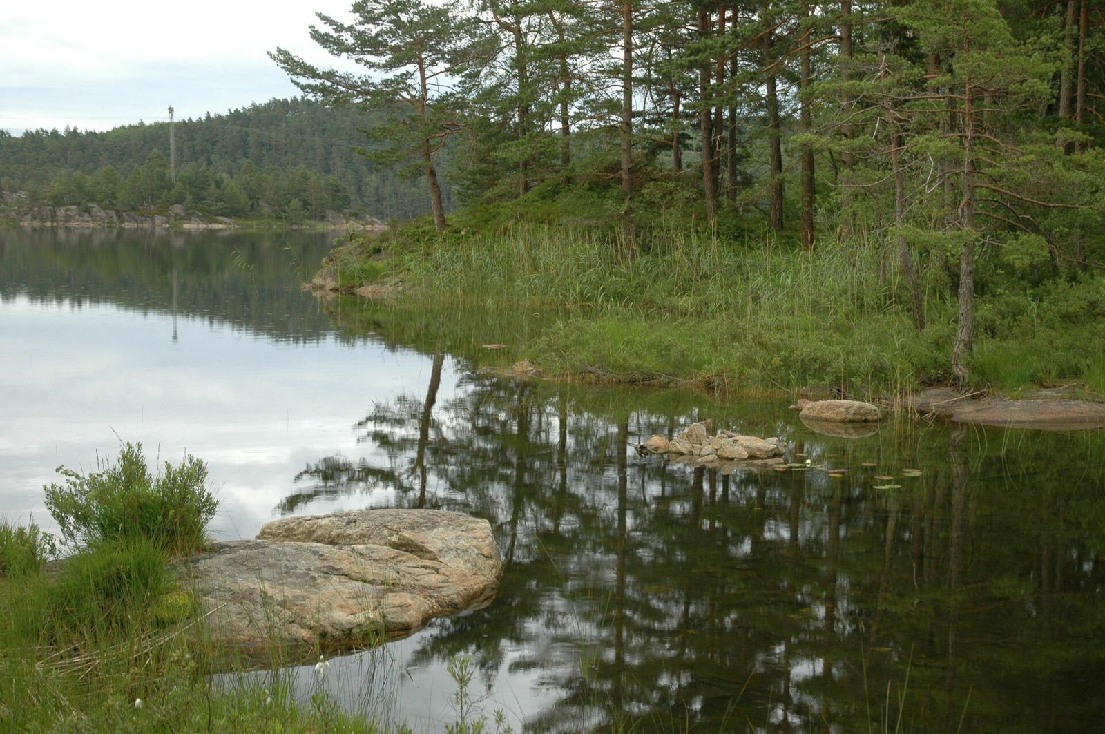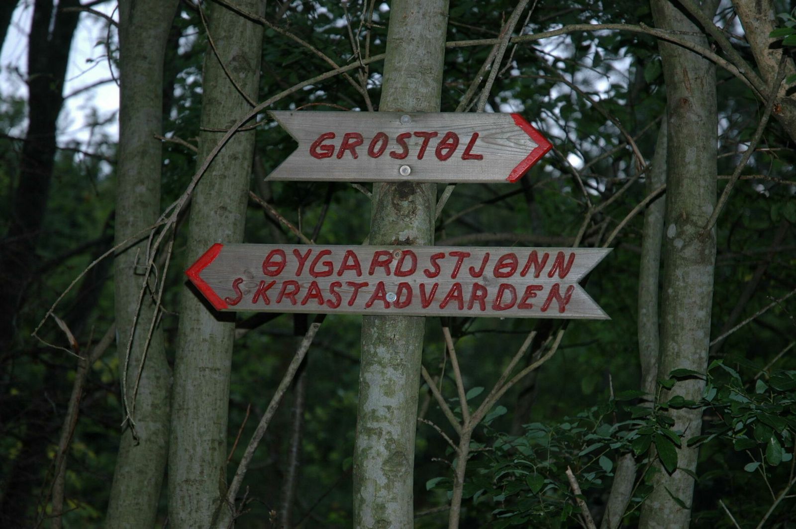 Ved Gilshytta er det fin parkering. Turen går videre innover på grusvei, over gamle demningen og inn i lauvskogen.