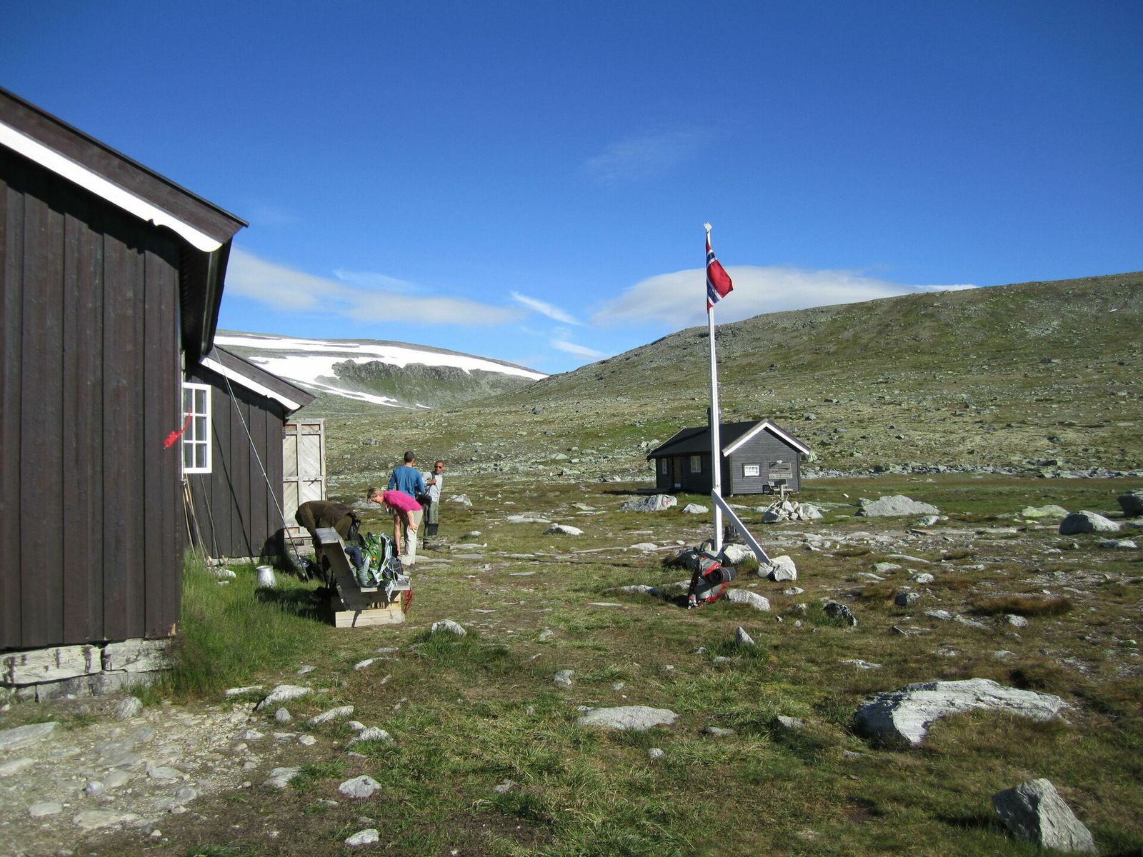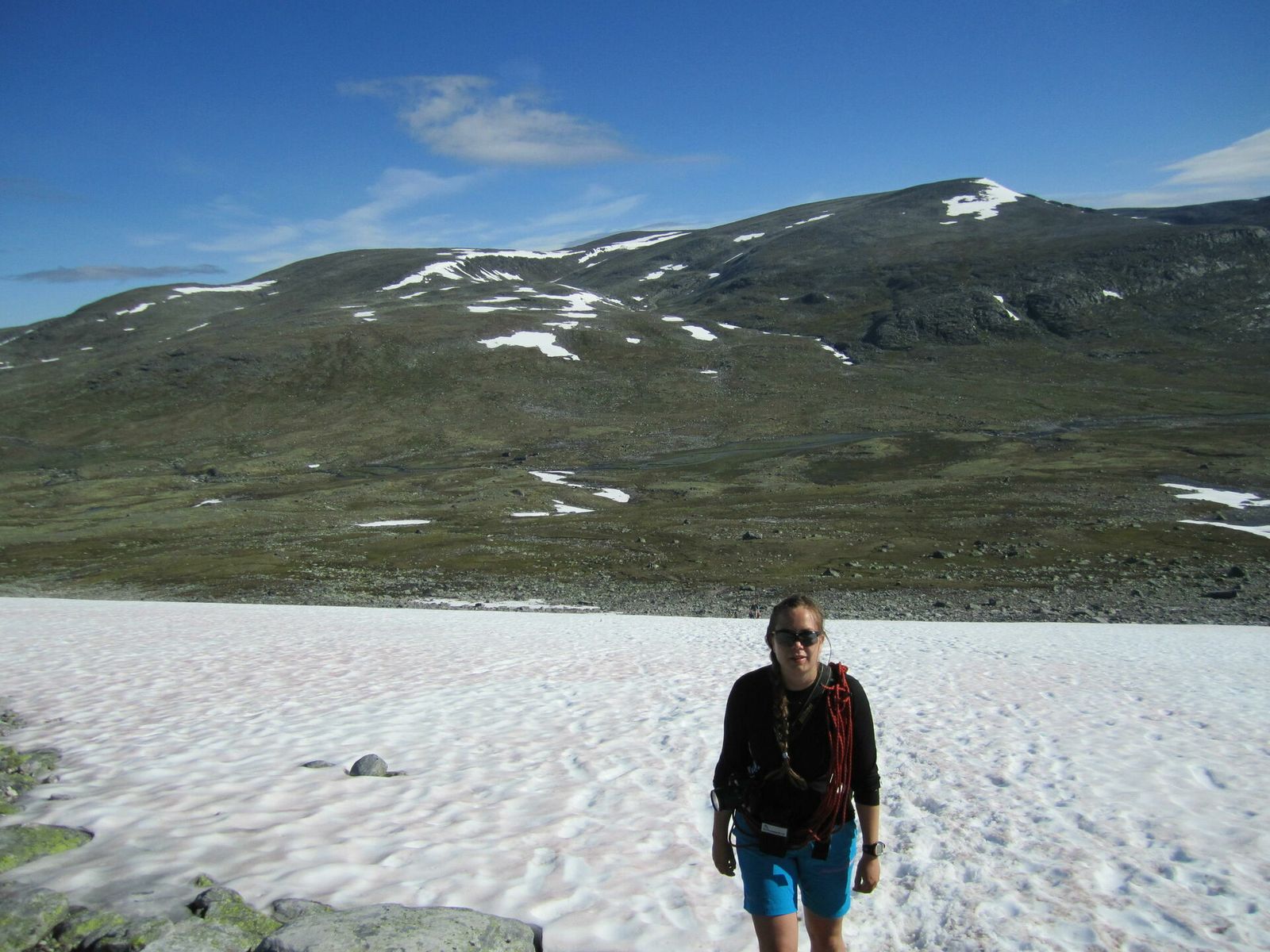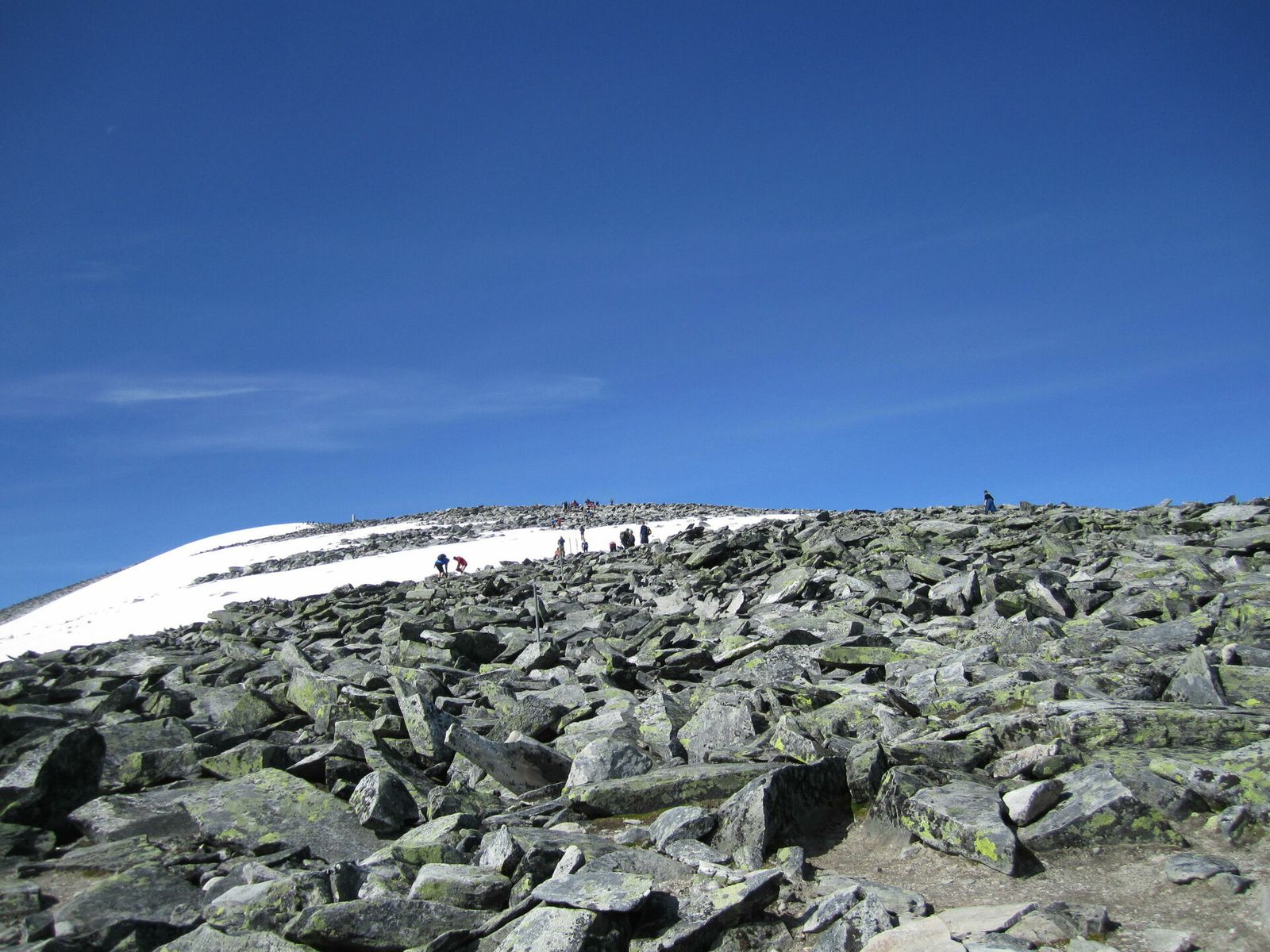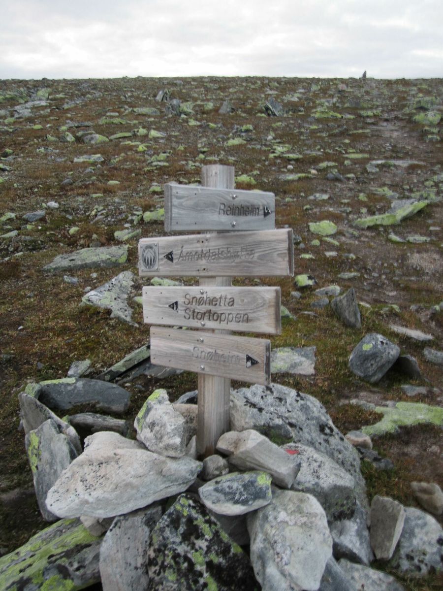 Snøheim er den letteste traseen. Nå kan man ta de gule bussene fra Hjerkinn helt inn til den betjente DNT hytta. Det koster 50 kr. Herifra er det godt merket rød sti opp til stortoppen og ned igjen. På en solskinnsdag må man regne med å gå i kø.