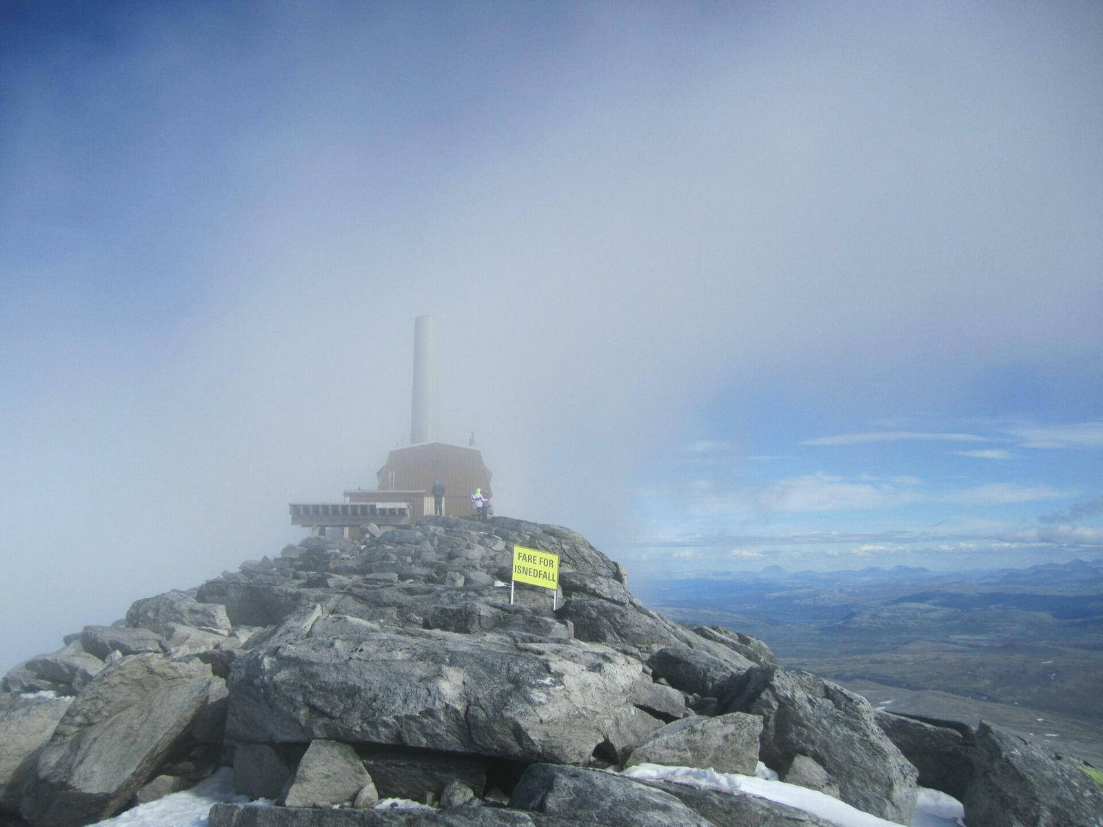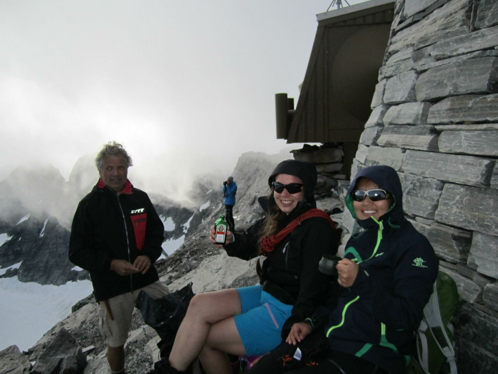 På midttoppen er det fint med kaffepause, men ikke sitt for lenge. Tåka kommer plutselig.