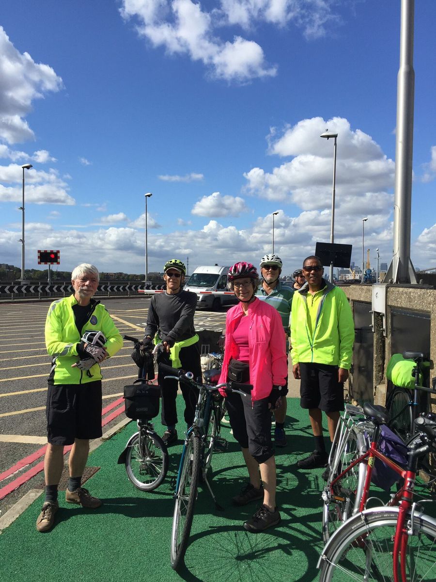 Six took part on this ride to Woolwich via the Greenway. A slight variation on the previous route took us on a meandering journey through the Olympic Park to the coffee stop. Then it was back to the Greenway proper. Much of the Greenway has been resurfaced so we fairly flew along. Additionally all the gates were open so no dismounting where roads cross the route. This is possibly a Covid precaution to stop handling of the gates; whatever the reason it improves the ride . The 'new' ferries separate cyclists from other vehicles but otherwise the experience is much the same. Lunch was mainly an al fresco affair in general Gordon Square in the centre of Woolwich The return journey was along the south bank of the Thames. It was pleasing that there was no need to divert from the path when approaching Greenwich anymore. Tea was taken on the wall outside the Albert in Bermondsey. A grand day out as Wallace would say.