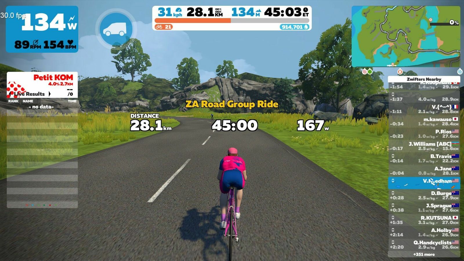 Rode the Zwift Academy Eddie Van Halen Memorial group ride tonight. The "A" group was advertised as 2.2 - 2.7 W/kg, but this is Zwift, so it was largely close to 3 W/kg. I hung on in the bunch for about 40 of the 45 minutes of the ride before cracking and falling off the back. Amusingly, the ride leader was a very distant cousin named Craig Needham - from Australia, so distant both geographically and genealogically. I rode between 2.5 W/kg for 20 minutes and 3.3 W/kg for 15 s (according to Zwift Power). Craig rode between 2.7 and 3.6 W/kg, respectively. It was also hot in the house. Indian Summer is here and it's going to be 90°F tomorrow. It was 78°F in the house despite open windows and fans running tonight, so the AC is going back on.
