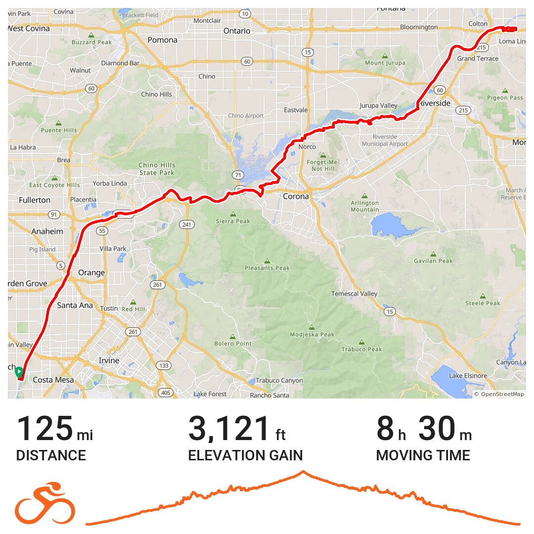 2015 Night Audax Ride organized by PCH Randos. Moving time is rough estimate as accidently zero'd my computer at In N Out.