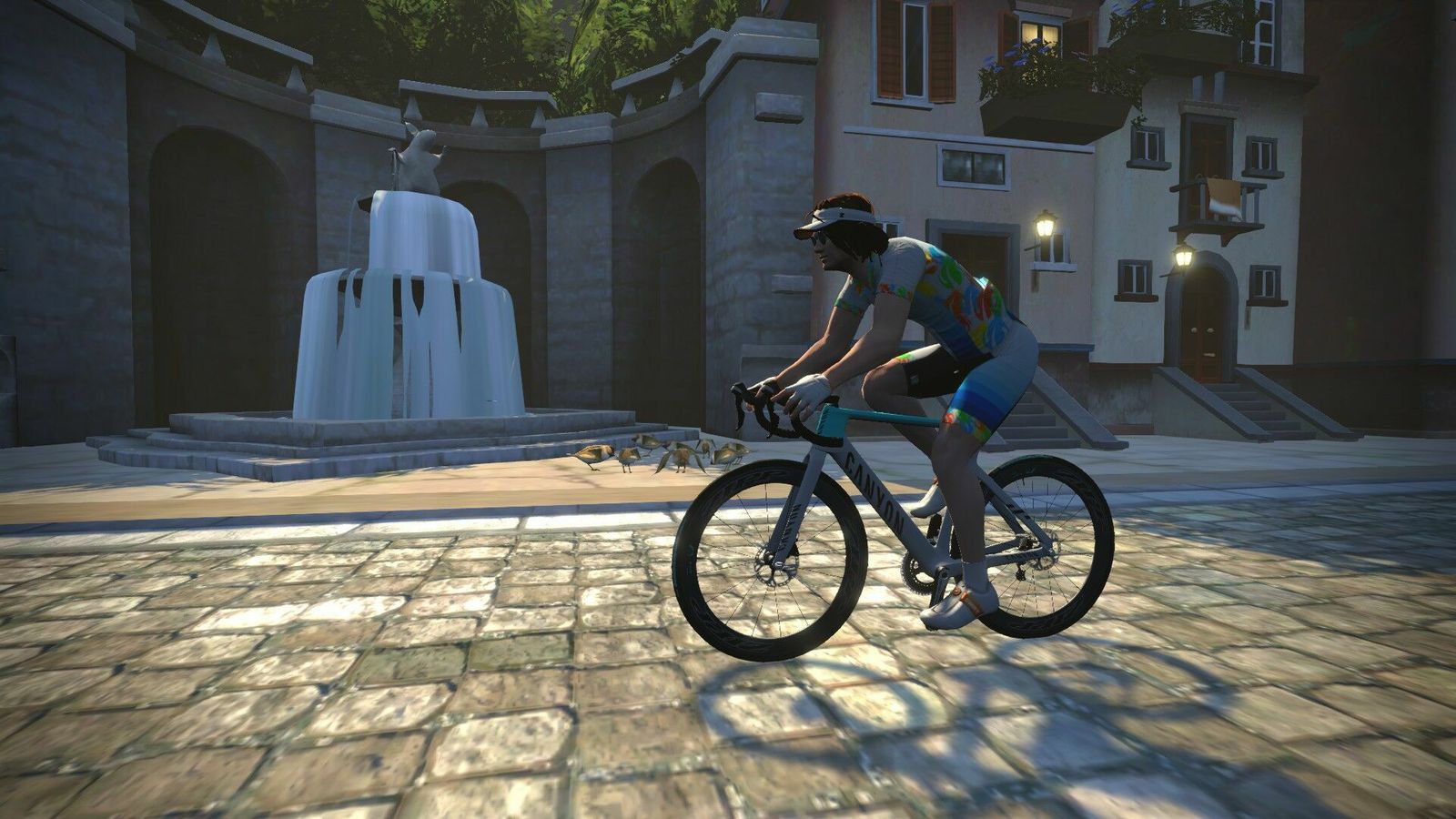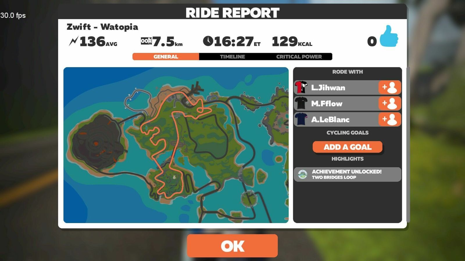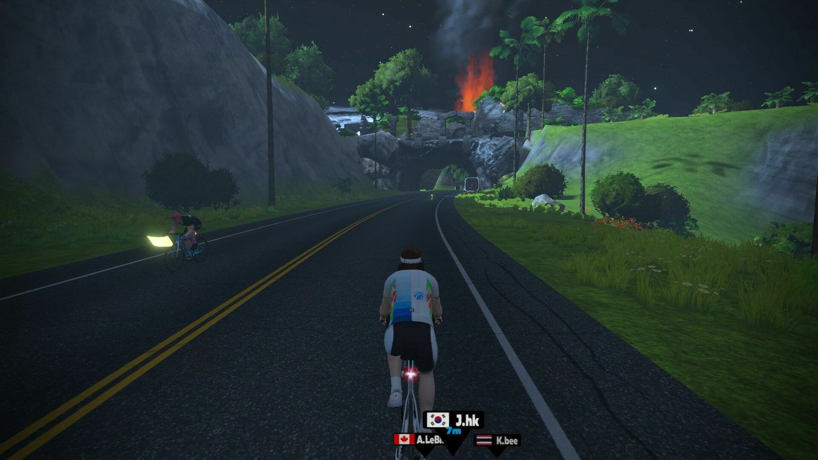 "The shortest of the new routes, Two Bridges loops keeps you near downtown Watopia thanks to the new “KOM Bypass” road which connects the Hilly KOM Forward with the Hilly KOM Reverse, shortening the climbs. At 6.8km with 80m of elevation it’s actually the “climbiest” of the new routes. Visualize this as an abbreviated Hilly Route."