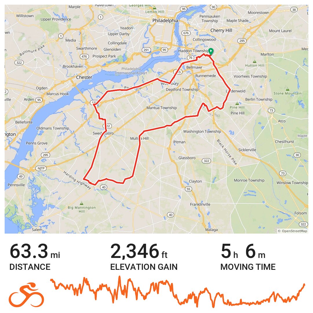 Wanted to do a longer ride this year, and I wanted to ride from home on a new route I drew up, a metric century (100 kilometers / 62 miles).