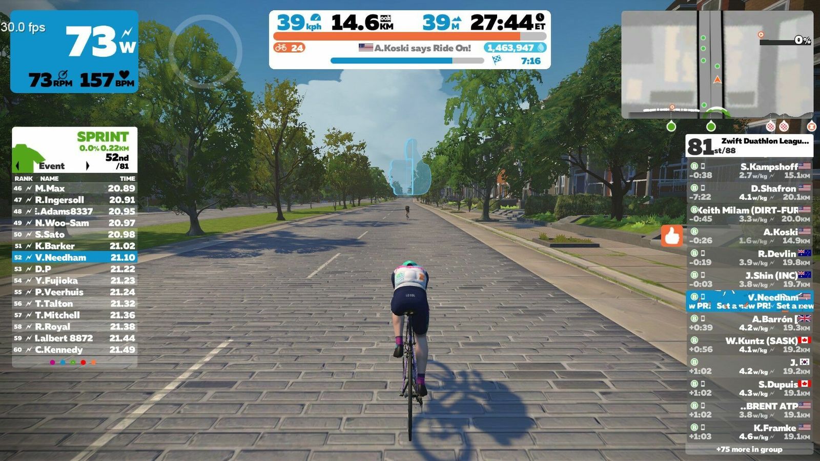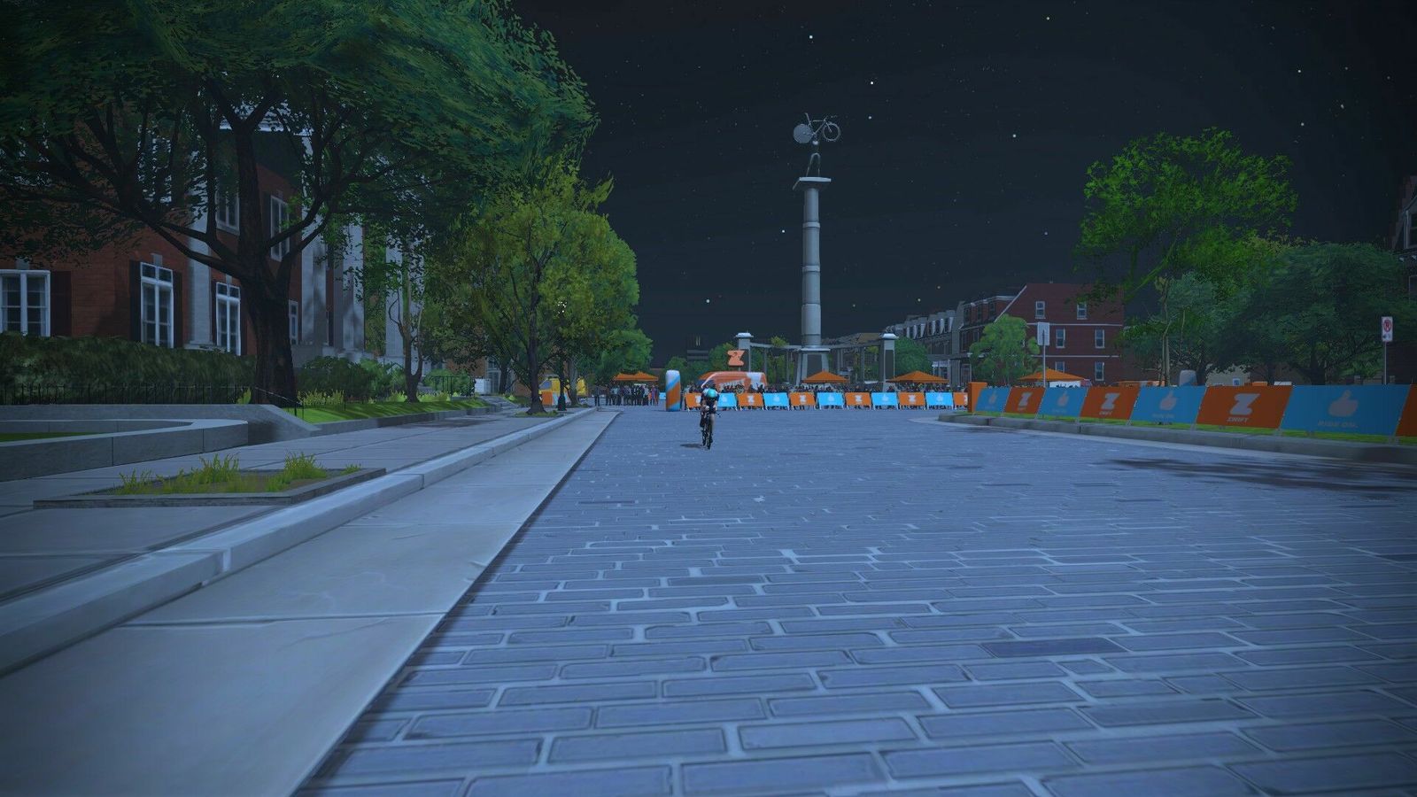 The second Zwift Duathlon League race began in Richmond on the Libby Hill route. I doubt anybody got to the hill, so mainly flat laps on Monument Boulevard. I swapped the Zipp 404s for 808s on the Zwift tri bike. I'm also tracking my weight automatically to Zwift now, so I'm a kilo heavier than last week. I did close to the same on the bike, maybe not pushing quite as hard. I definitely did better on the run. More on that later. The powers that be still haven't worked out the scoring from last week, and the results pages from Zwift or Zwift Power are no use (we all tied on time :-).