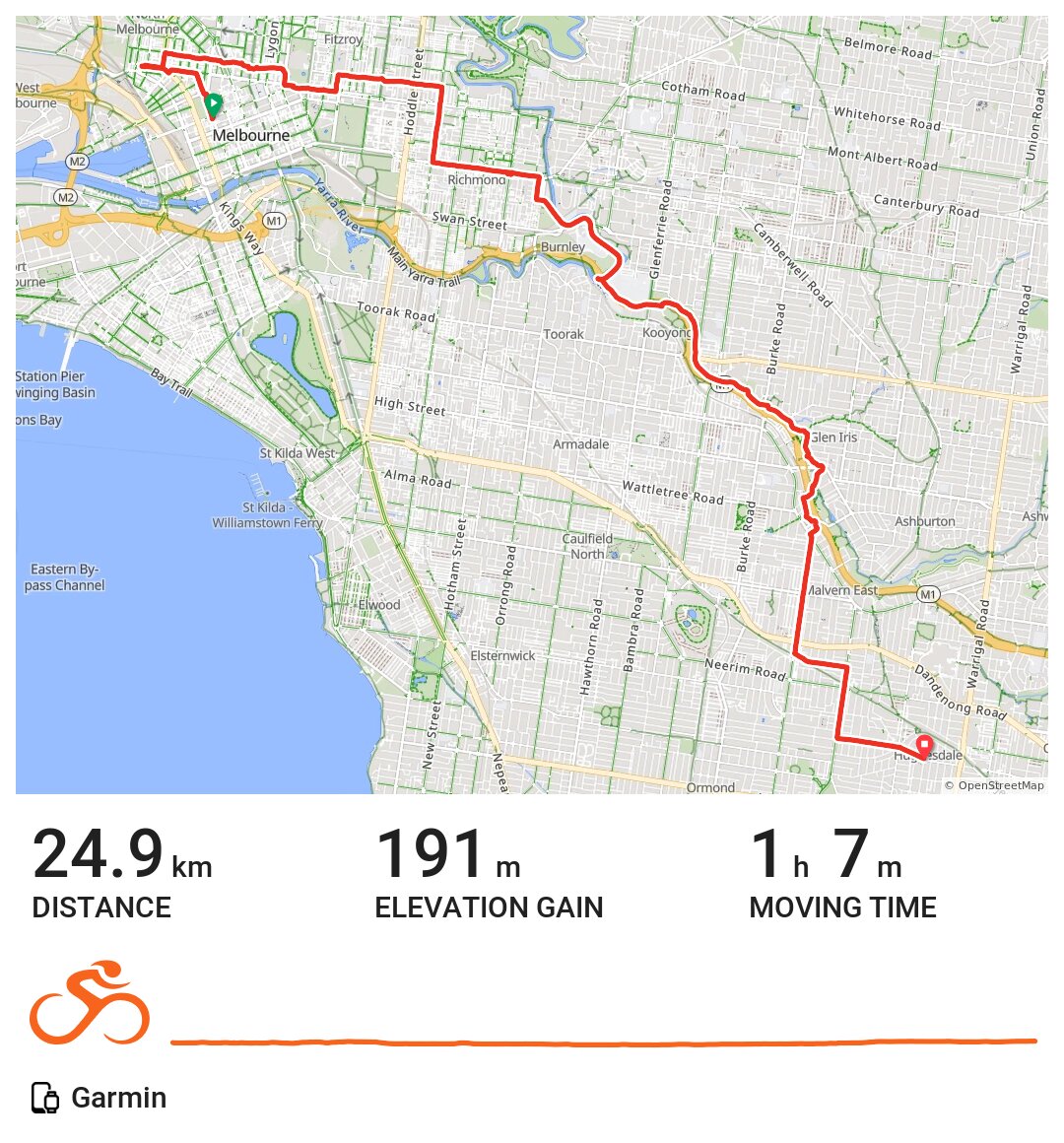 Through parts of the world foreign to me, across the south end of Carlton, Fitzroy, Collingwood, back into known territory of Abbotsford and Richmond. Stopped for a coffee... I wonder what this place used to be back at the turn of the century when I lived here? Home along Gardiners creek, passing an enormous flock of raucous corellas, then up through Carnegie & Murrumbeena, riding on the streets to give the passing distance measurer something to measure