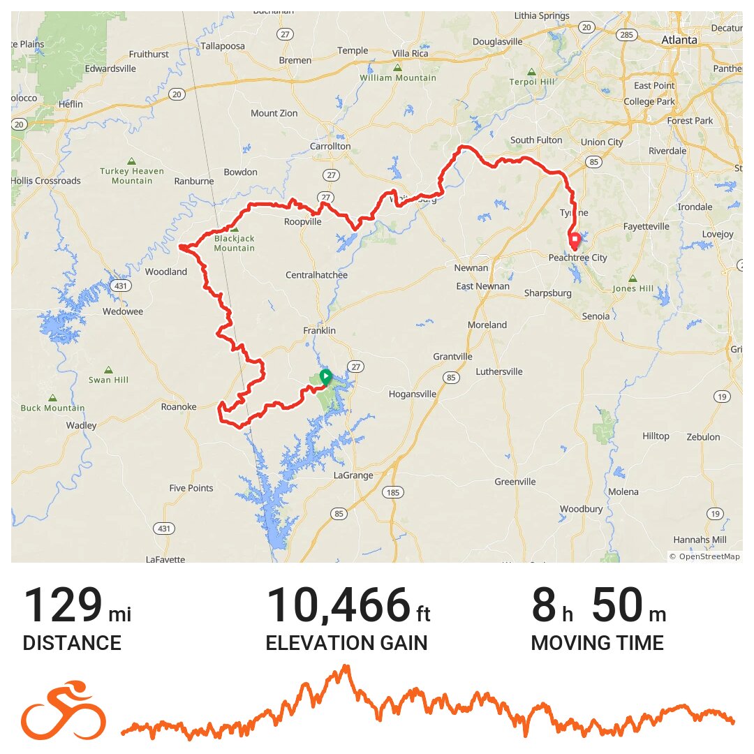It was fortuitous I found those churches because by filtering a full gatorade bottle that had washed up on the shore of the lake, it clogged my filter something fierce. It had a bit of dirt in it but otherwise it looked just like regular orange gatorade. I filtered water two times on this ride and it was really hard. I should have brought my little filter cleaner thingie. Will bring next time. It weighs nothing. The wind was from the west, southwest at first but then from the northwest I think? it mostly seemed behind me the whole ride thankfully. Except when I was climbing steep hills and it was behind me and with the high temps it was really hot. The clouds came in later as the day wore on thankfully and it felt cooler. Strangely I saw nobody on the portions of Dirty Sheets, except 3 different motorcyclists, and I just came back the shortest way home after that, traffic wasn't too bad. Palmetto road was dead for some reason and Senoia road was about par for the course.