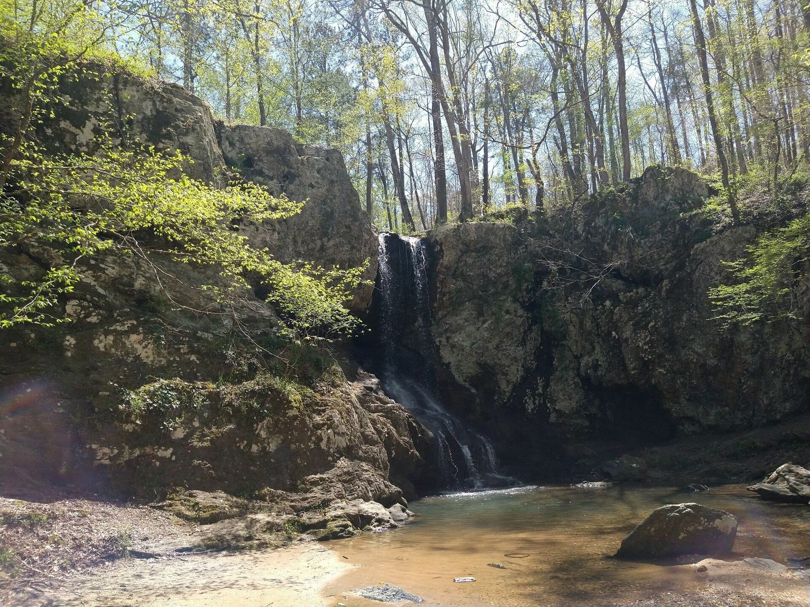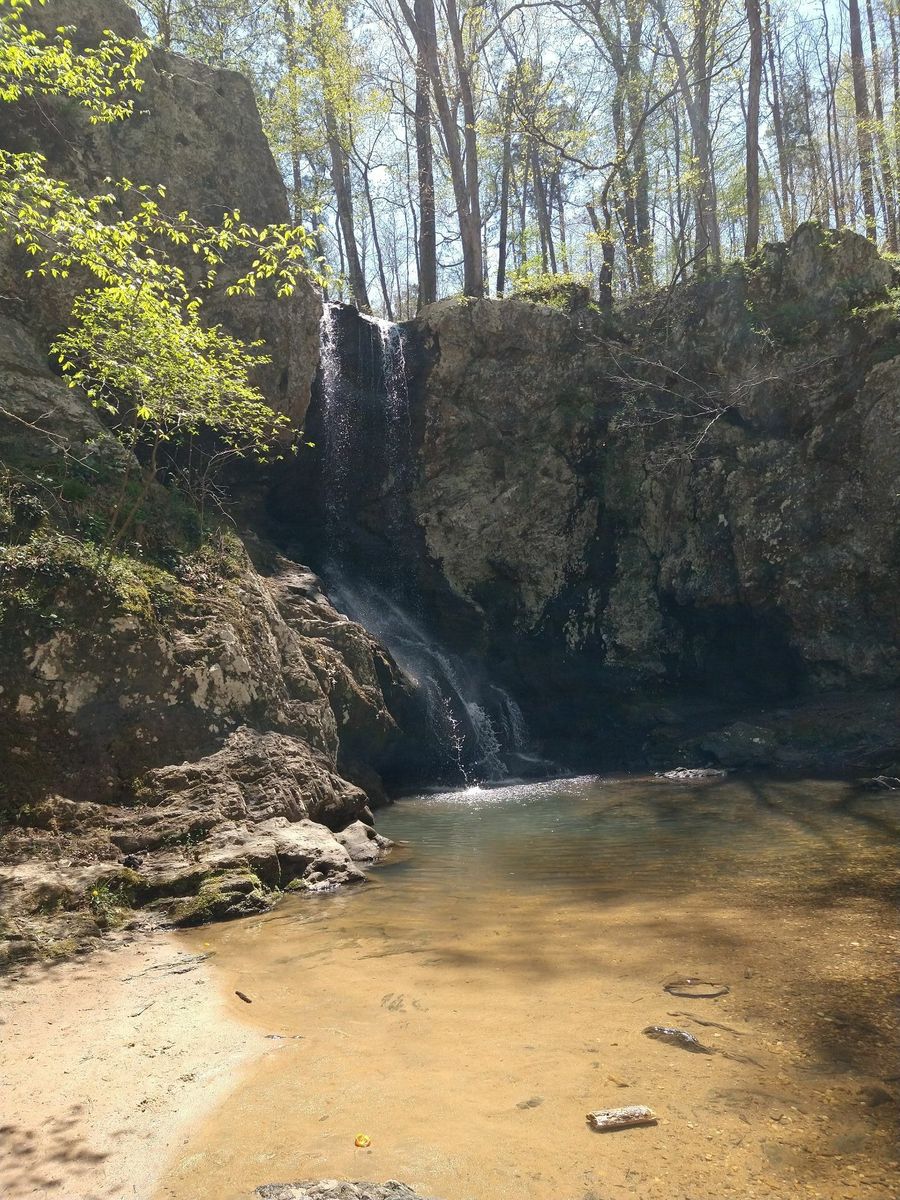 Pretty uneventful day. slight crosswind from the west. Super hilly roads. High Shoal Falls near where I camped was a unique sight this far south. it was a small creek that tumbled about 20 feet into a shallow pool of water that was good for cooling off. There were a couple of families already there enjoy the creek in the middle of the day. I filtered a little bit of water from a small tributary of the creek and got going. I was careful to avoid running over the fresh white paint that a couple of people were working on for the brand new parking lot.
