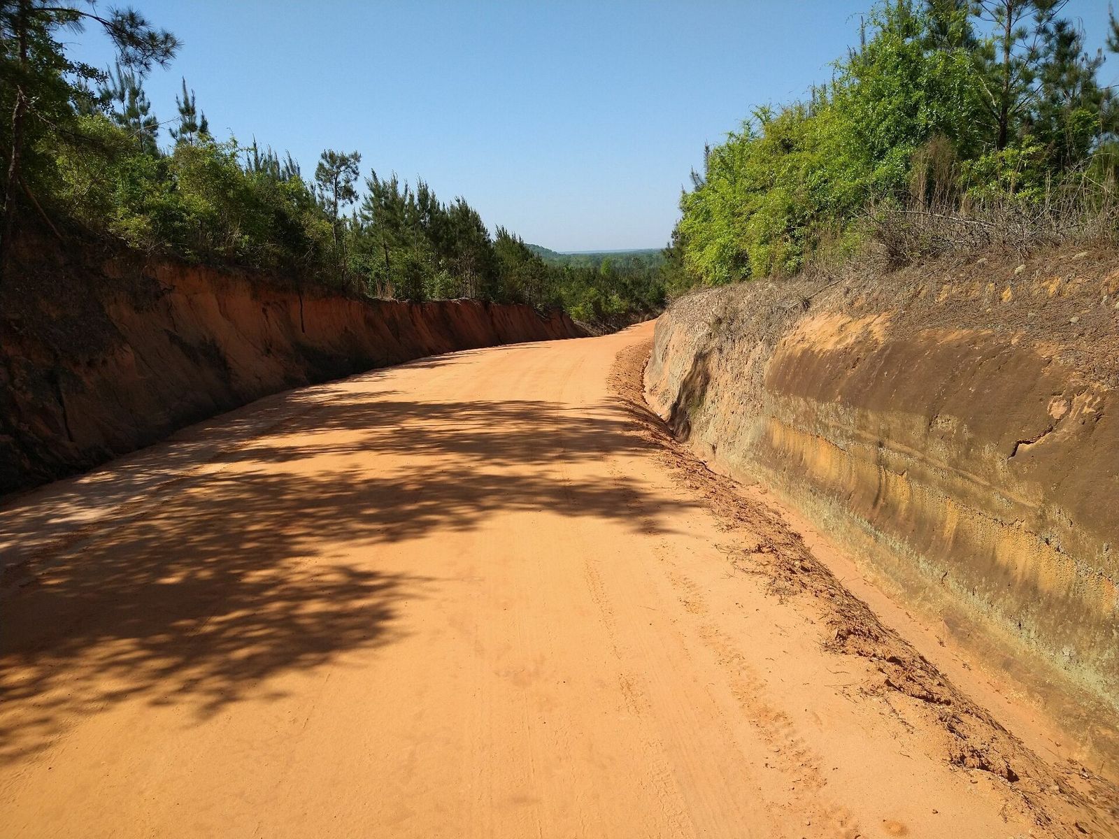 Today I knew I would be crossing the Fall Line a few miles into the day so I was rather surprised to find quite deep sand within the first 100 yards of starting the day. But it didn't last long. I went back and forth on gravel for awhile, then on clay, then sandy but not too bad. Then I worked my way down to the hills around the Fall Line, which I had forgotten about. Thought I had said goodbye to 12% grades but I found one today. But there weren't many and soon I was on normal undulating terrain for south GA. It soon became apparent that this would be a really windy day today. Mostly out of the northwest. As it so happened, my route took me southeast mostly so had a good day. One of my favorite sayings about the wind is that it's never with you. It's either against you or you're having a good day.
