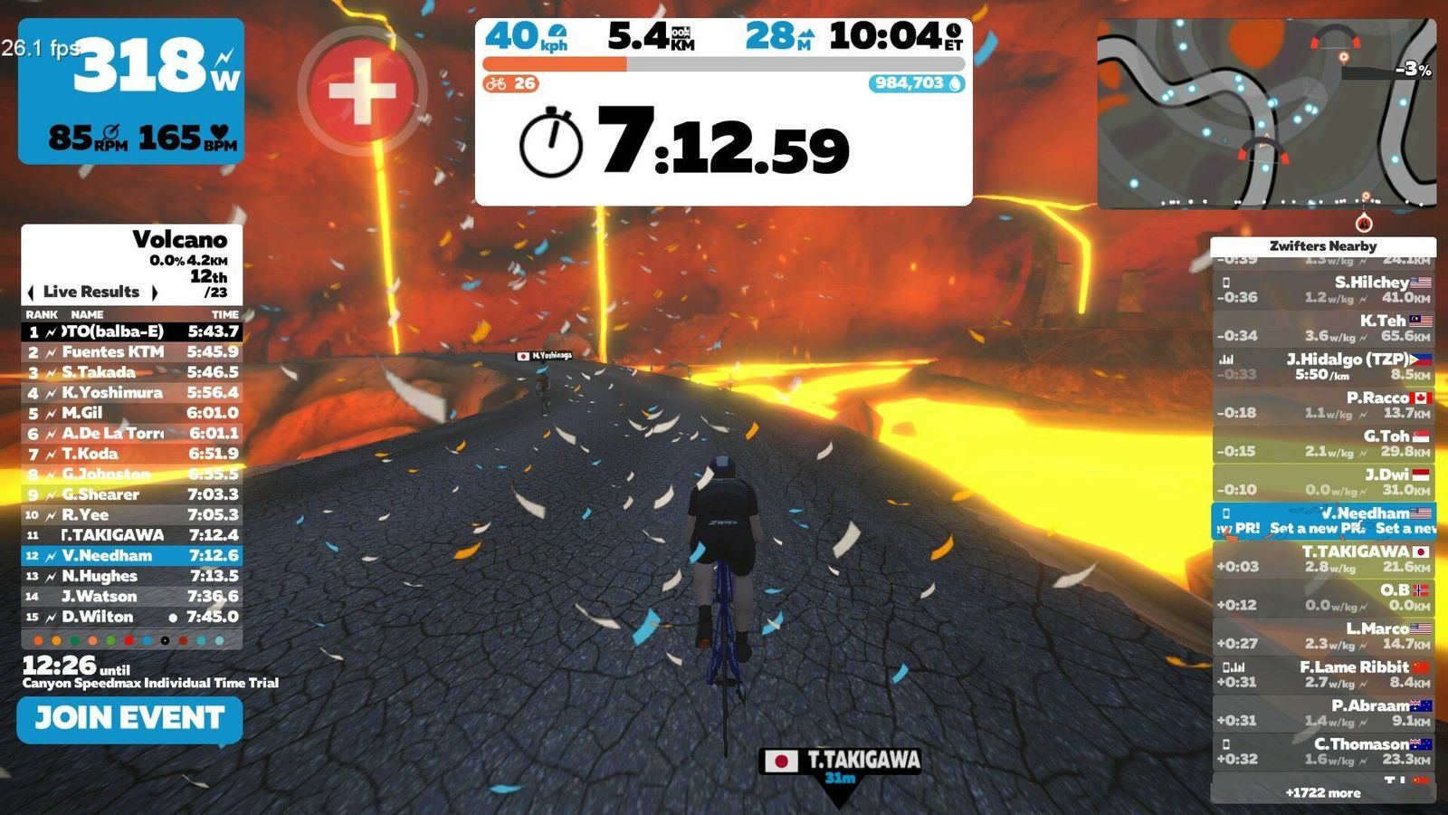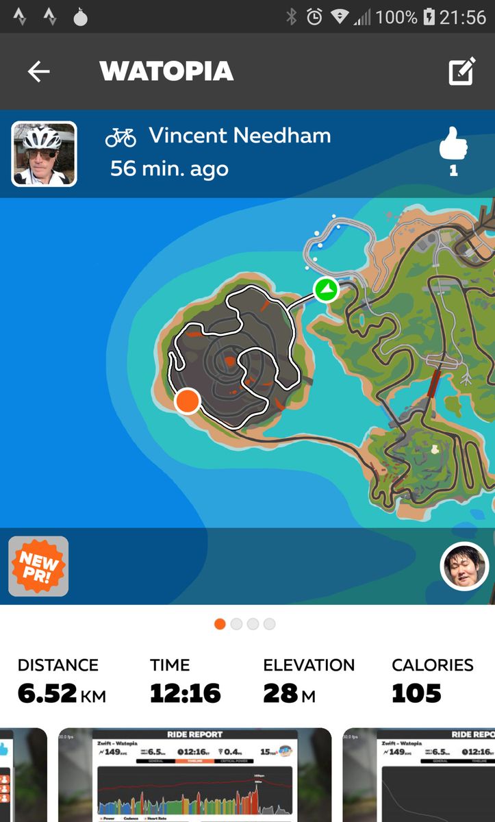 Warm up for tonight's Specialized TT, again on the Volcano circuit, and yes, yet again I have set a new personal best. This can't go on forever... or can it? It's a bit warm in the house but I thought ahead and opened everything up and turned on all the fans, so it isn't too bad.