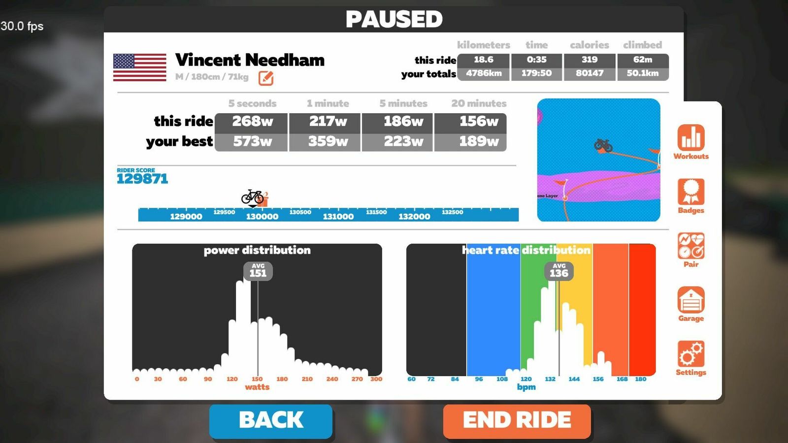 | Avg HR: | 136 bpm |