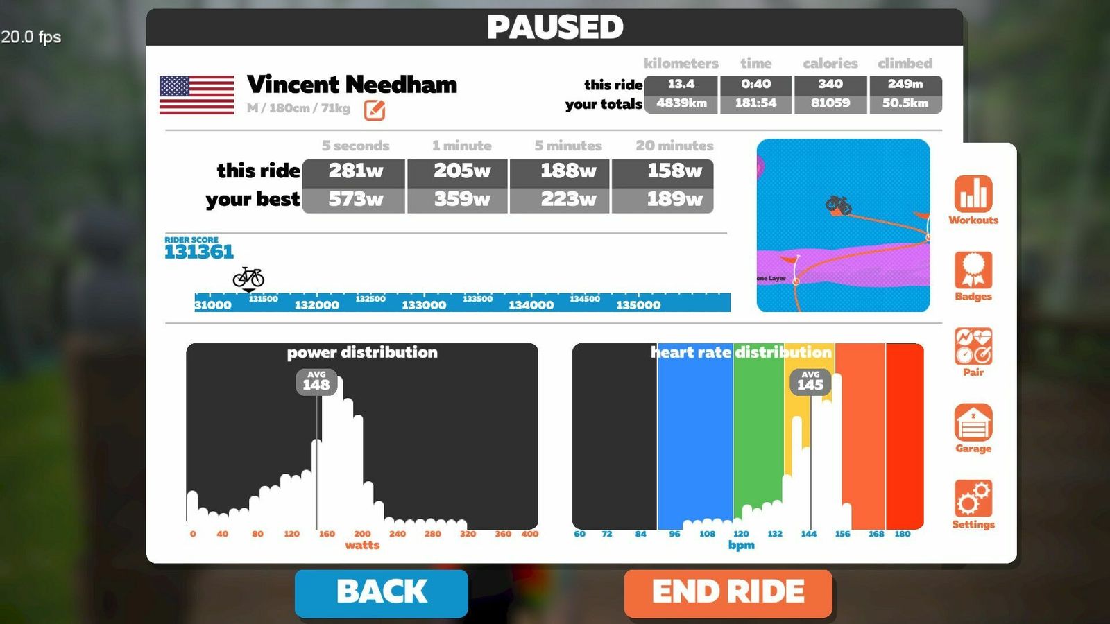 | Avg Watts: | 153 ( with 0s) |