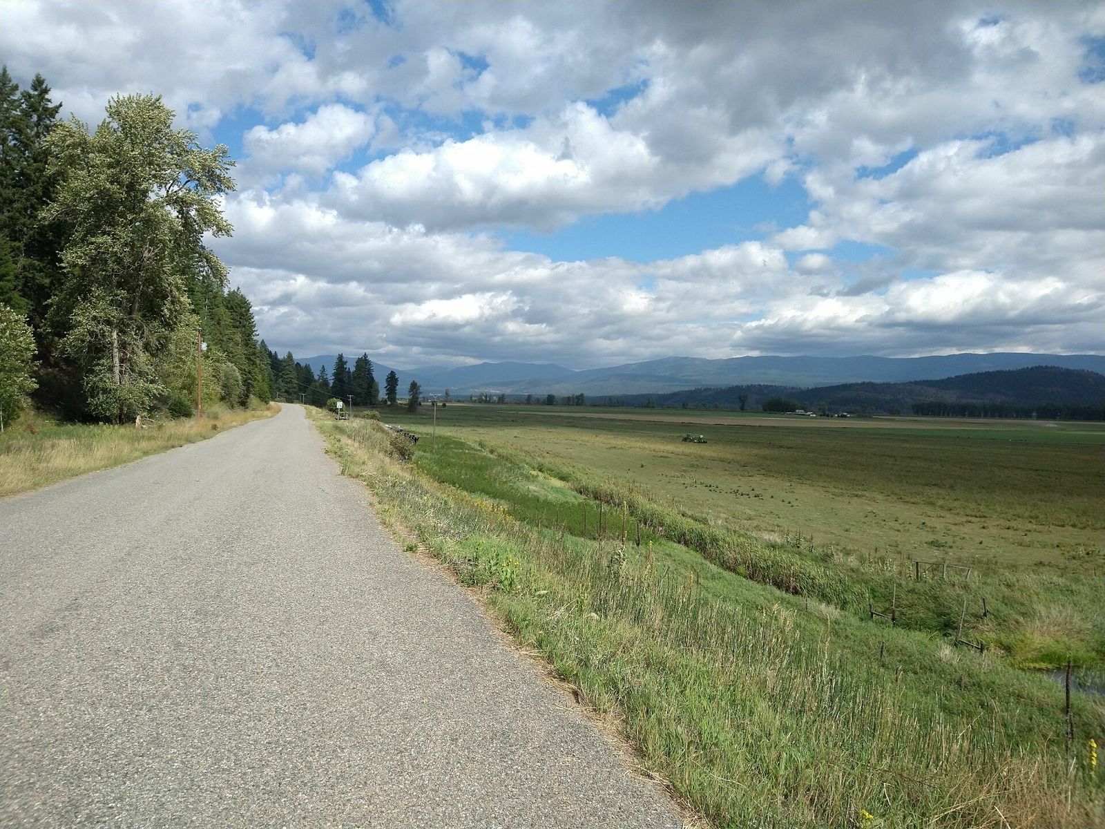 The little bit of town traffic died off after only a few miles and I mostly avoided even that on bike paths and bike lanes. The route took me through the Kootenay river valley and was very flat, and with a very strong tailwind I made excellent time. Roads were in great condition which also made things fast. Had a short less than a mile section of singletrack that was really just a closed road still open to bikes. Otherwise I was on about half pavement and gravel. Basically no traffic at all.