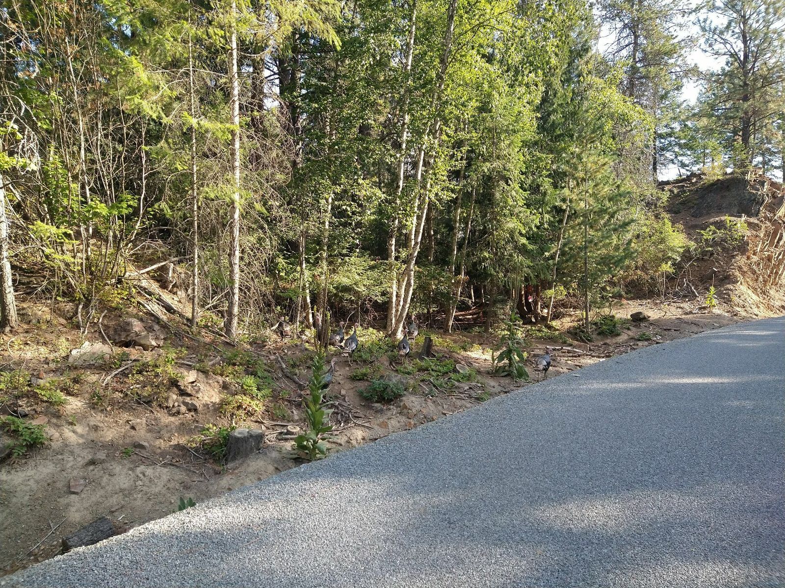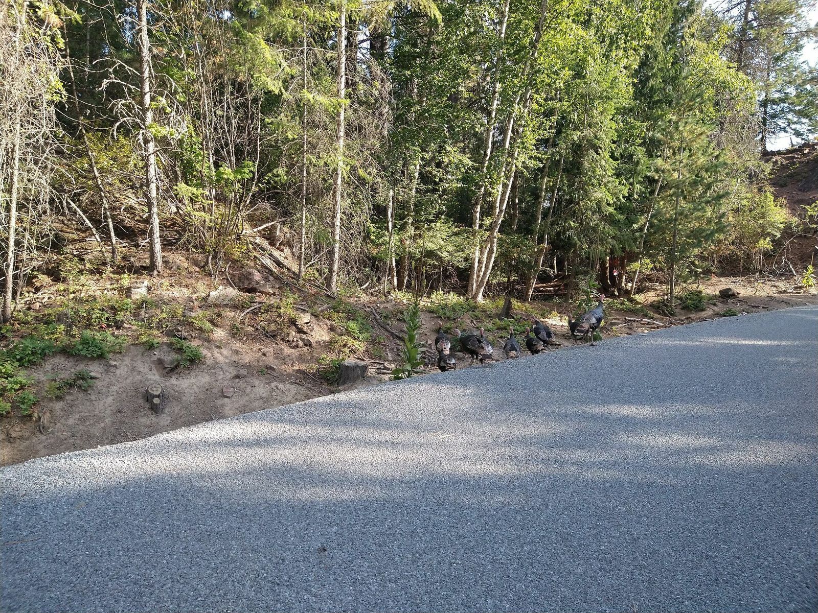 I arrived at the last crossing of National Forest lands of my route today not long after noon, and found a good flat spot underneath a dense canopy of young conifers a good distance from the road which isn't busy. About one car every 5-10 minutes. Border crossing tomorrow hopefully, in around 15 miles. I have no idea if I can still use my cell service there. If not I might get a prepaid plan at a store, but otherwise it might be awhile before I can upload another ride.
