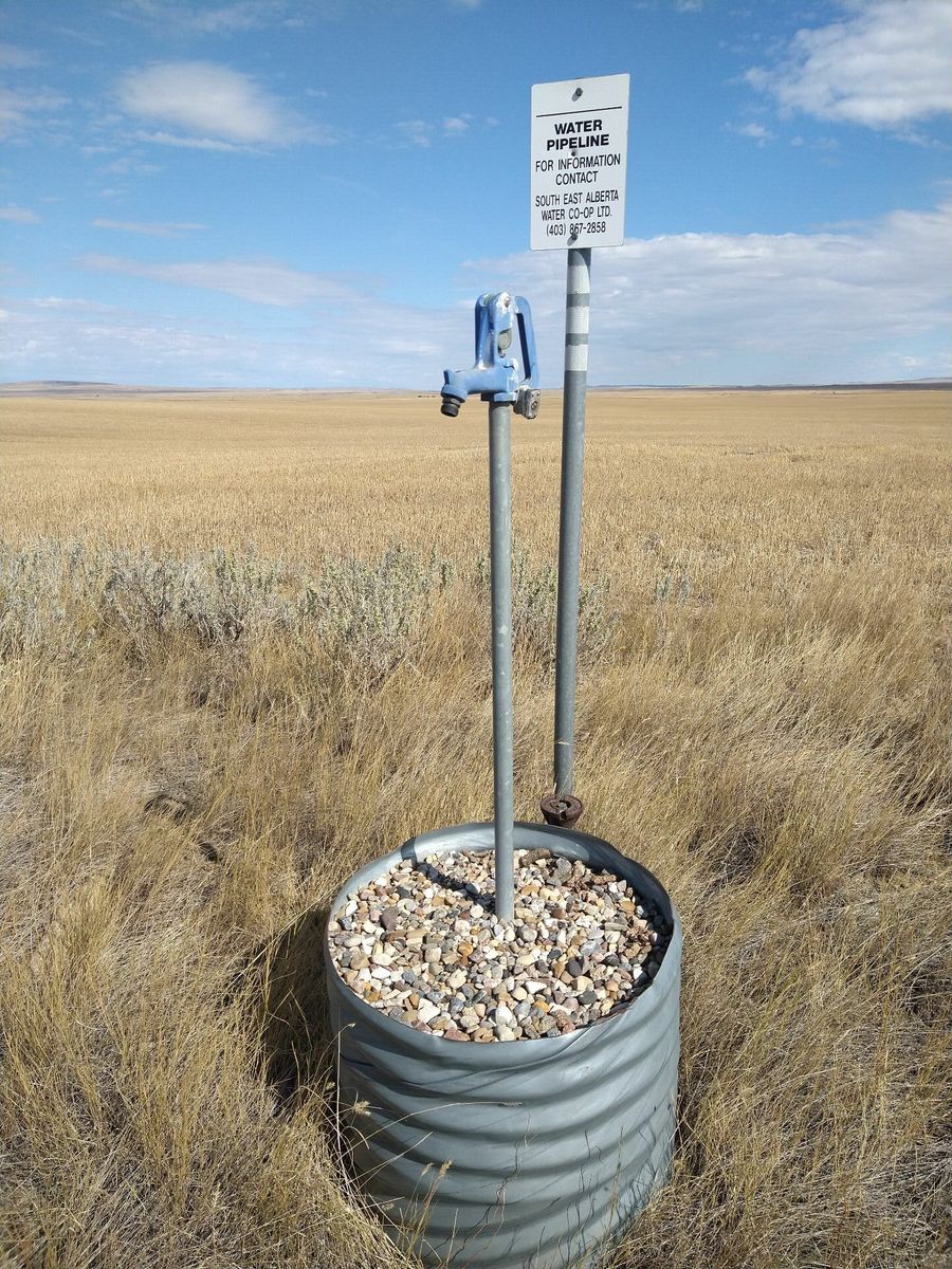 I stopped at a tiny weird mini mart, the only store in town that I could see. It had huge packages of weird stuff, most of which didn't make any sense for me. I ended up getting a bunch of Snickers and OHenry bars and a coke, for extra water. I filled 5 liters on the bike in preparation for if the only town of the day, tiny Etzikom, didn't have water.