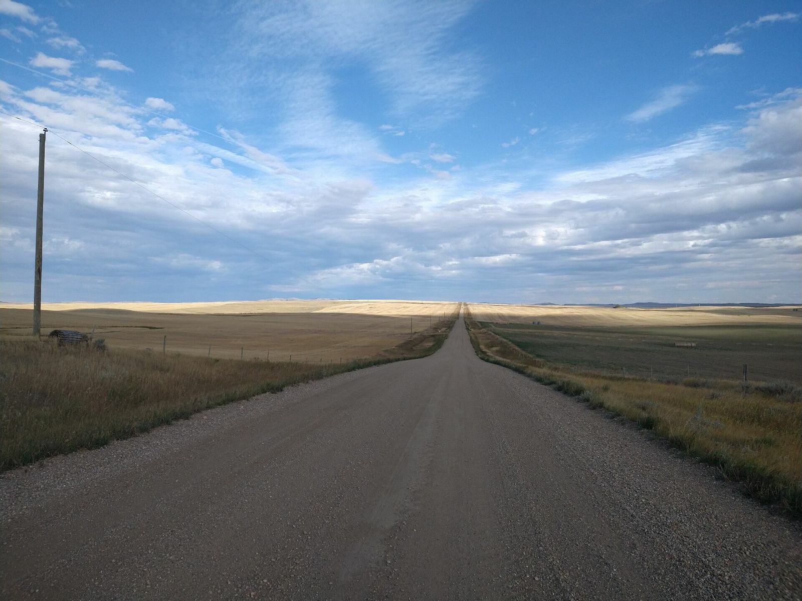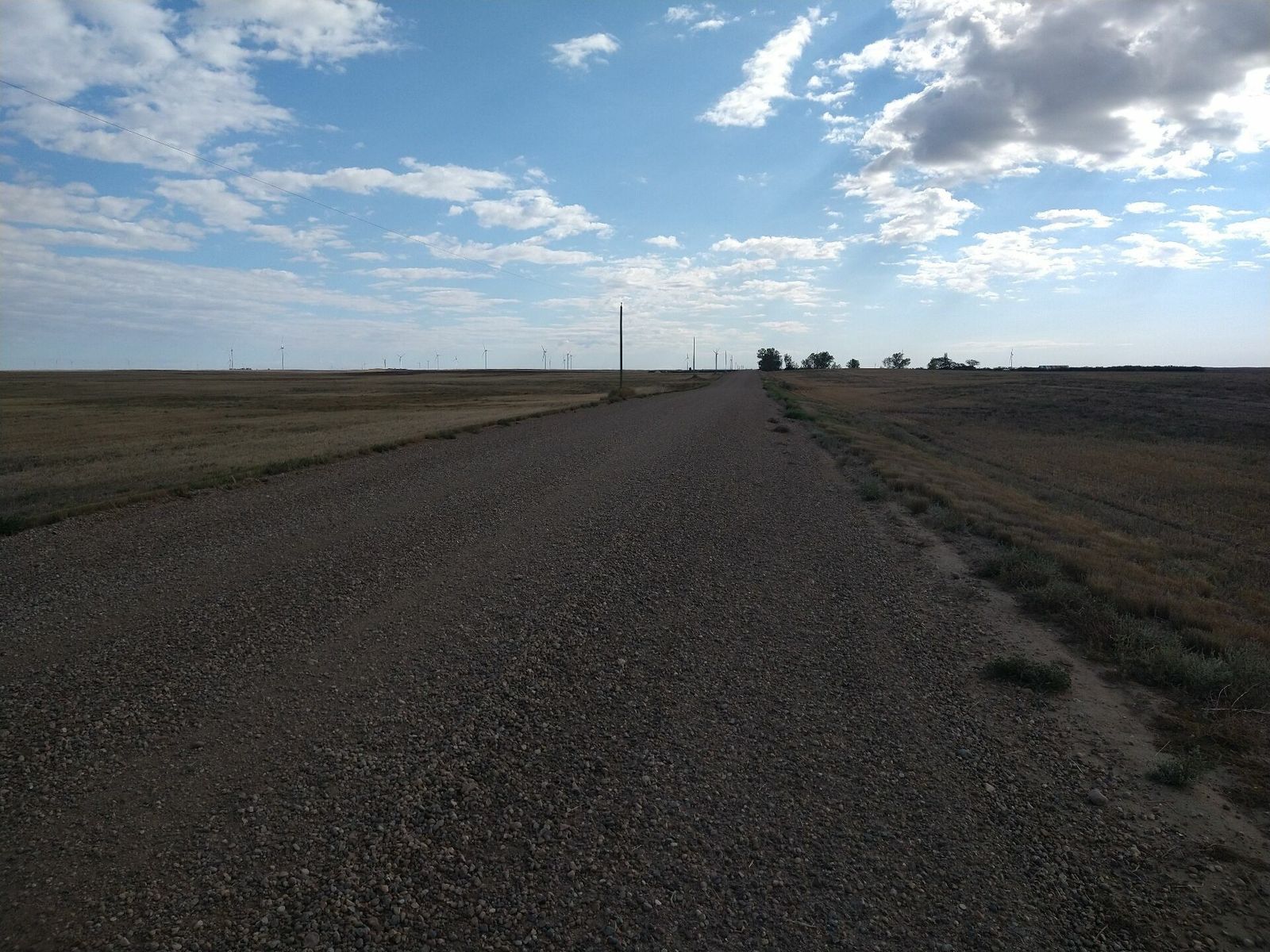 As soon as I turned east the wind hit me like a ton of bricks. And it was bitterly cold. I was glad to have my knee, arm and ear warmers on. Thankfully I was on gravel mostly today. However it was tricky at times. The gravel was pretty loose again and often there was only a couple of decent lines, usually on the left side of the road. So I had to pay attention for traffic. There's actually a lot of trucks as this is harvest time for corn and potatoes here.