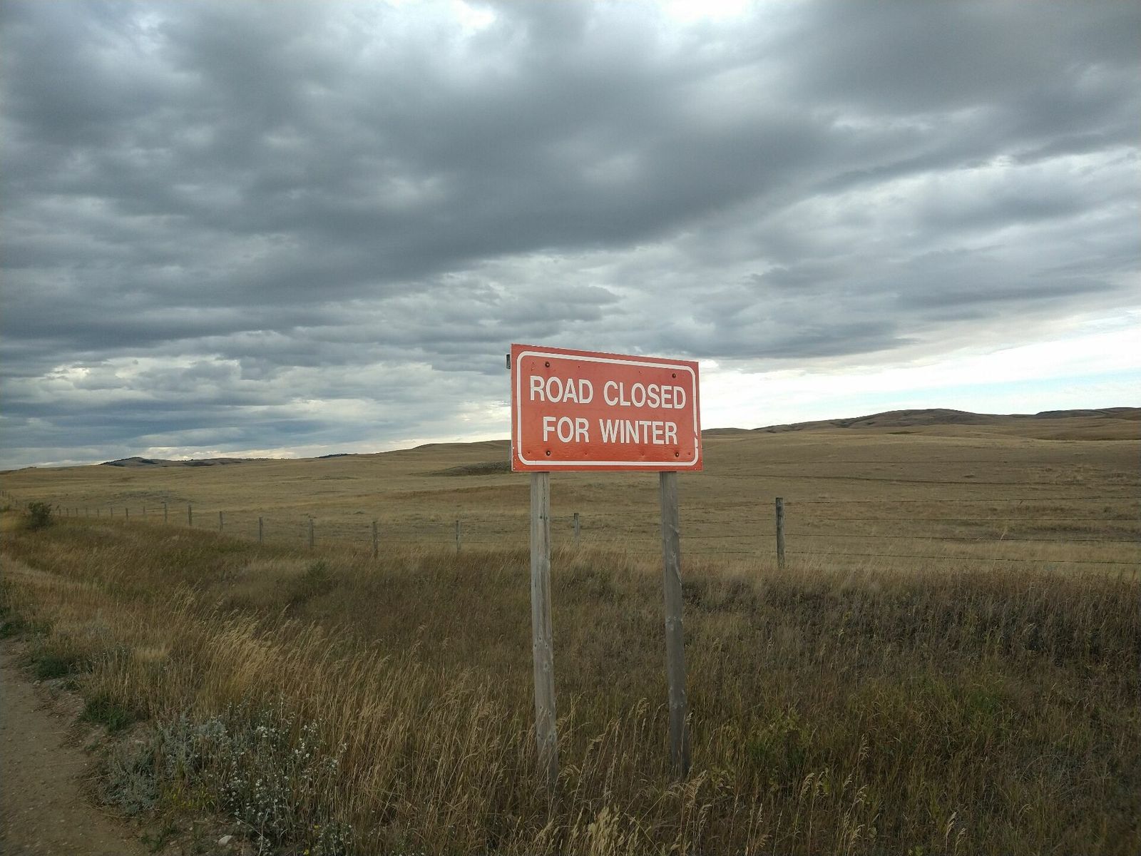 The wind and gradual hills up to Cypress hills park really did me in today. As I approached I became more and more tired. I just wanted to stop and camp. I went by several probably acceptable stealth spots, but all on private land. I kept pushing. Weather was good but there was a huge cloud over the hills. As I got closer it was looking more like it might be rain. I somehow found the energy to make it to the very edge of the park boundary and I rode and walked up the hill and found a reasonably hidden and wind protected spot. As soon as I finished setting everything up and throwing my stuff inside, it began to rain. Thank goodness I stopped when I did because it then rained for over two hours, at times hard. And it's still raining as I type this. I'm exhausted and don't have a whole lot of water but the town of Elkwater which has a store is very close. There's tons of campgrounds there and if the weather were better I might have pushed on. But this is fine. Glad I didn't have to ride in the rain.
