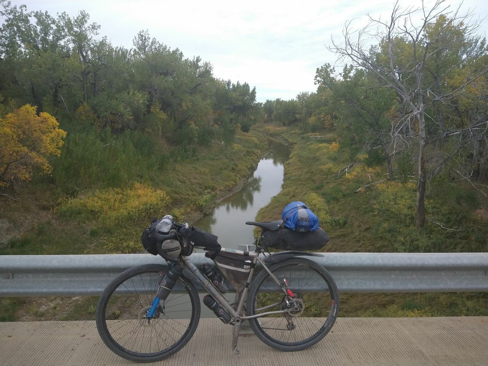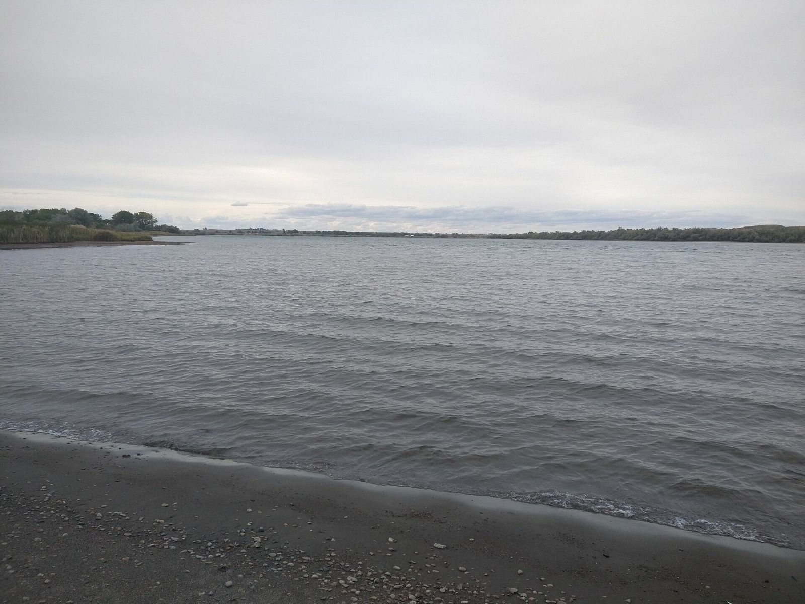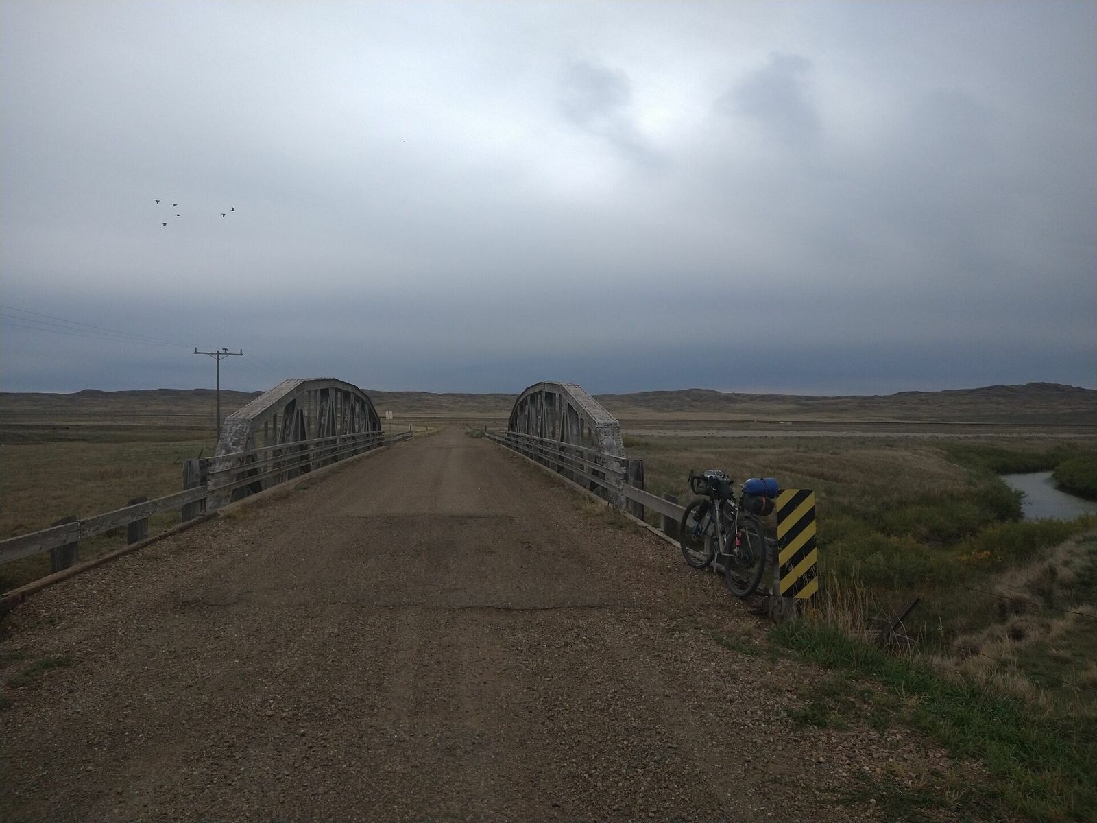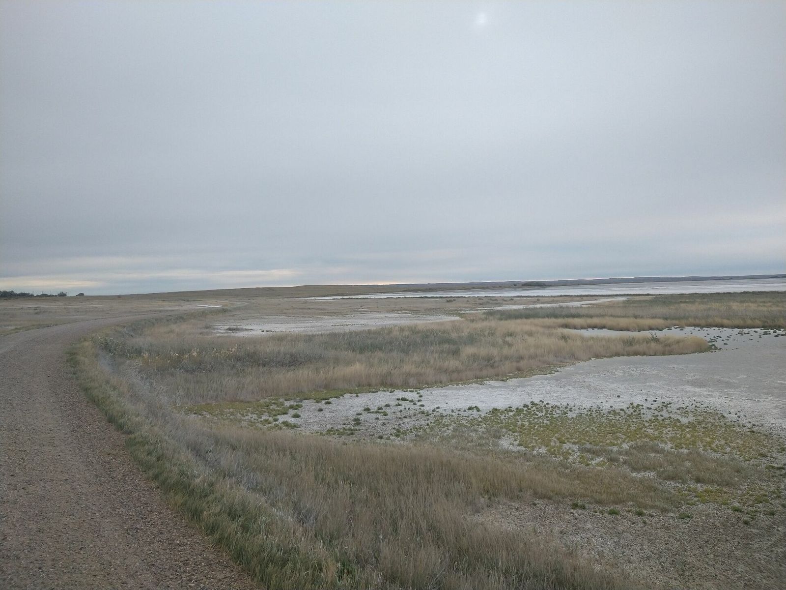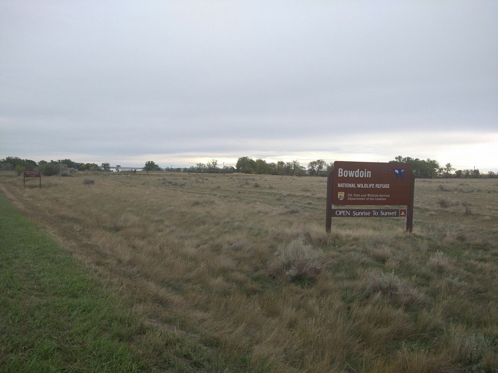 The morning was pretty mild today and the wind wasn't bad. It was nice breaking camp without worrying about stuff blowing away. I grabbed a couple things at the grocery store and headed off. I was able to get on the old highway right away and then actually bypass even that in the Boudoin National Wildlife Refuge. I took part of a curvy gravel road that looped around a big lake, and then jumped back on the old highway.
