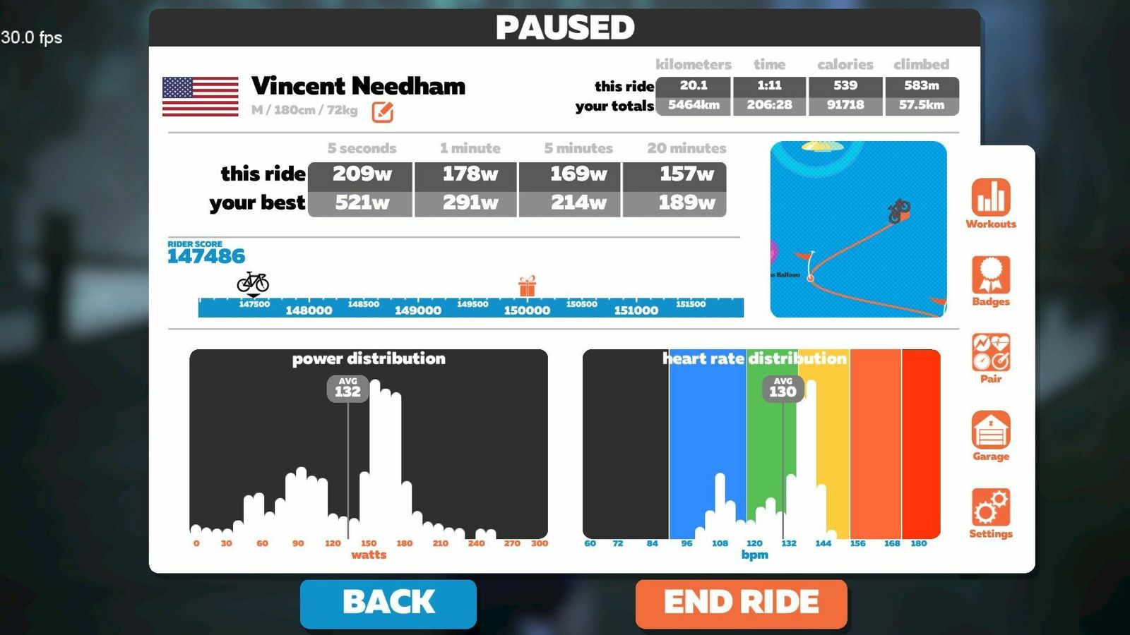 | Avg Watts: | 133 ( with 0s) |