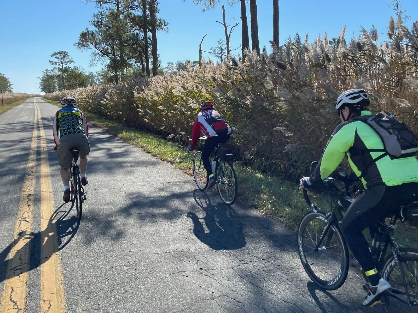 On the way back in, we did a few miles of paceline riding to beat the headwinds. Hard work for me.