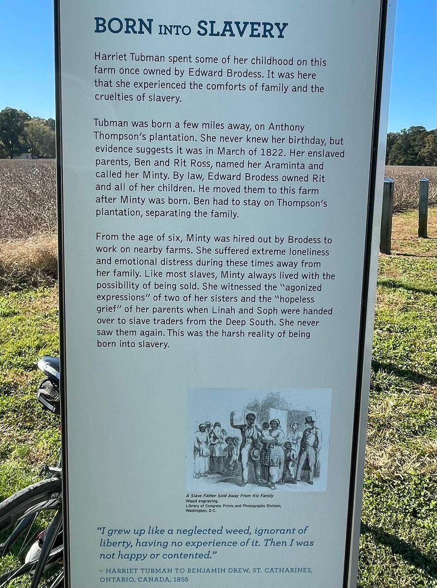 Rode out and saw the area where Harriet Tubman came from: the Brodess farm site she labored on, the general store where she took a hurled metal weight to the head which fractured her skull and started her having visions.