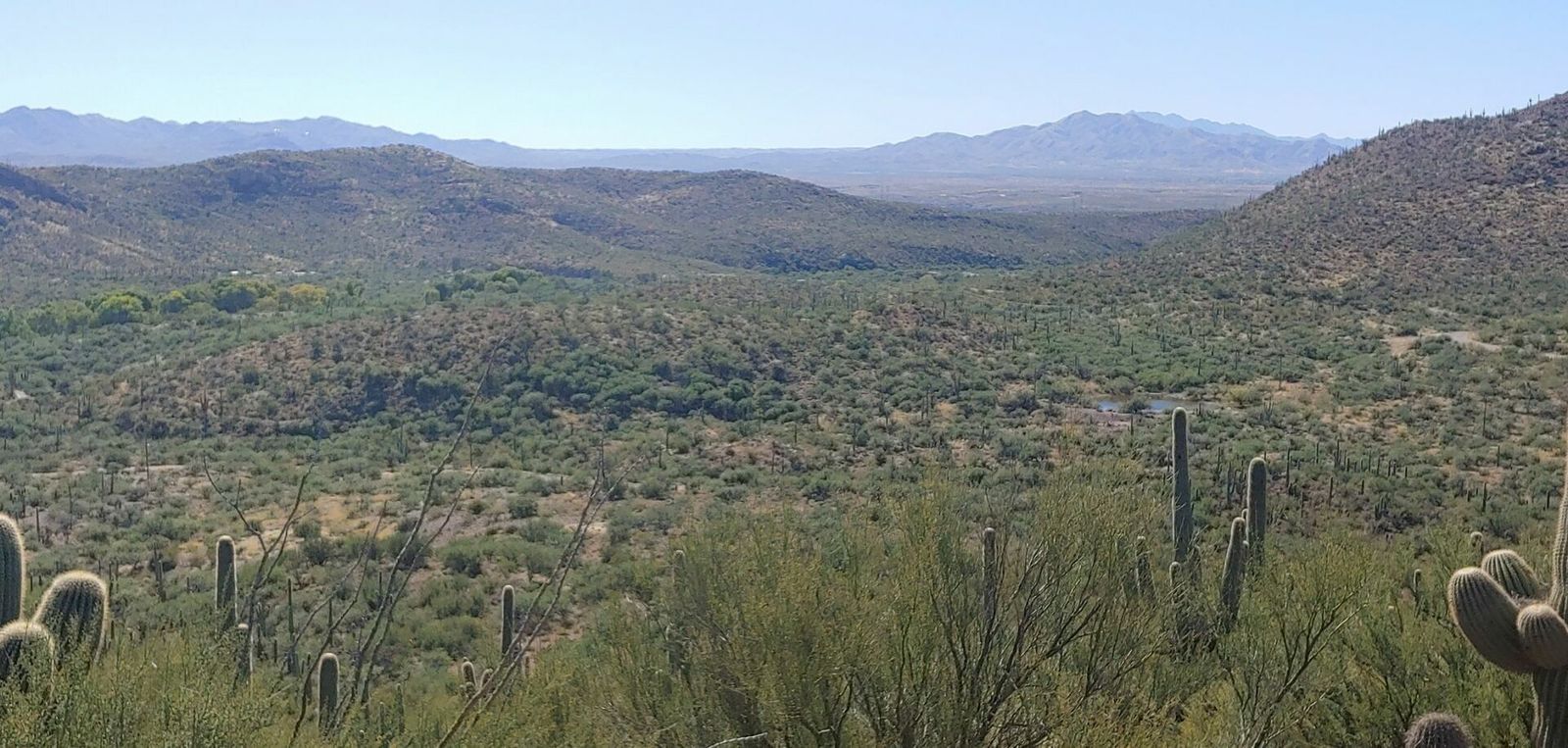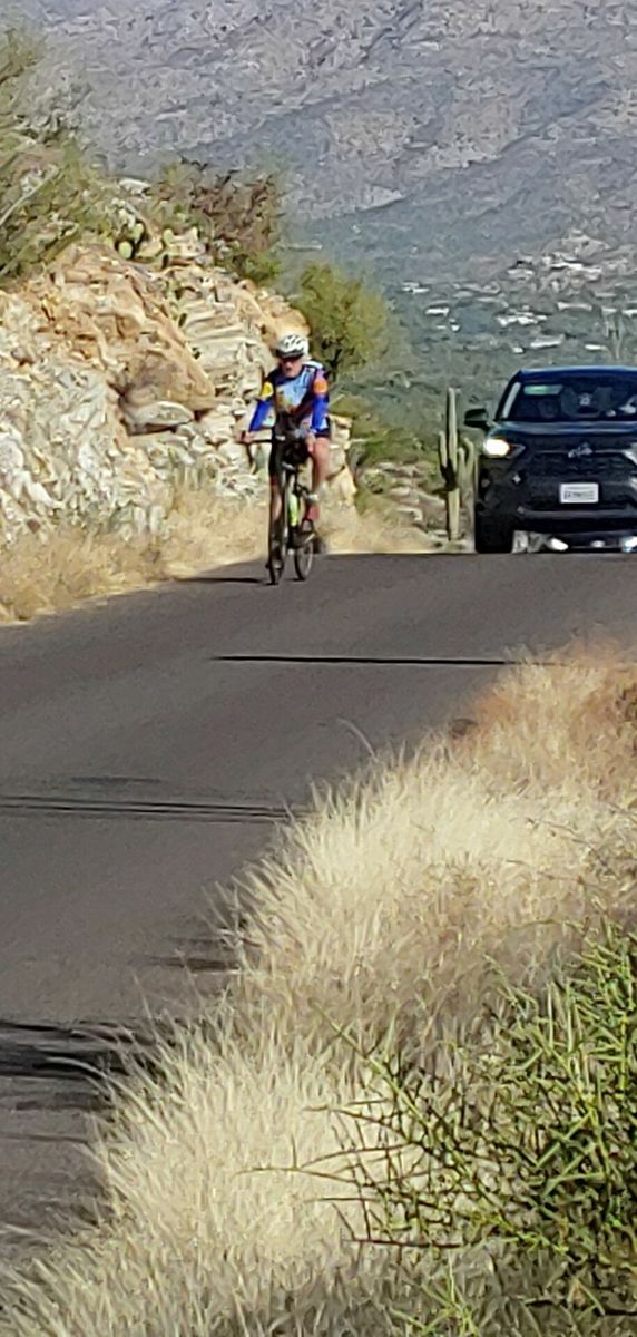 This mornig I met Rich M at Saguaro Park East for the big loop around and to the picnic area. We lingered awhile at the ramada to socialize with other riders who stopped by on their park visits. Rich H and Harold showed up as a couple of regular Friday riders. From there I biked to the end of Old Spanish Trail and up to the Colossal Cave Mt Park to enjoy the view from the top. For my exit from that park, I followed the (terrible) interior road past the park ranch, camp grounds and picnic areas and bypassed the locked gate onto Colossal Cave Rd which ends at Pistol Hill Rd. After a full morning of lots of climbing, I was running low on water, so returned home via Cm Loma Alta, Old Spanish, and Camino De Los Reyes. It was an interesting and fun day of variety, good views, temps in 70-80 range.