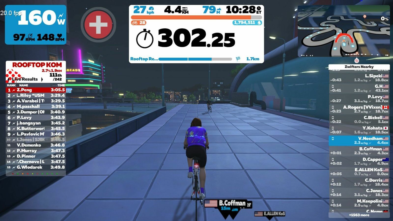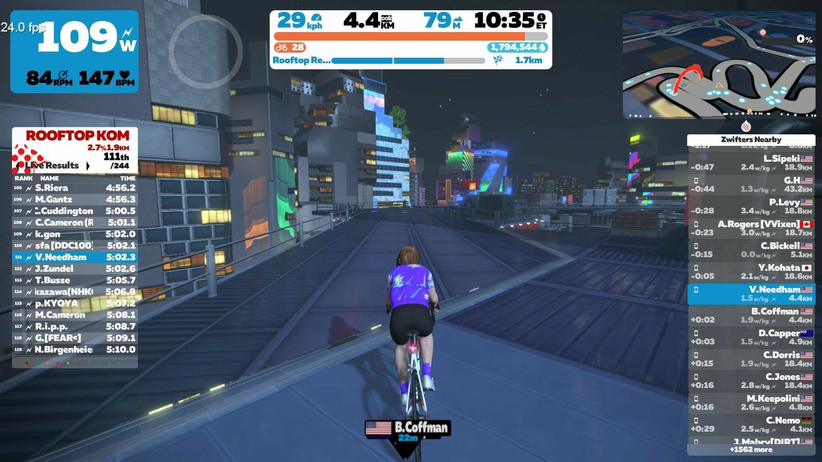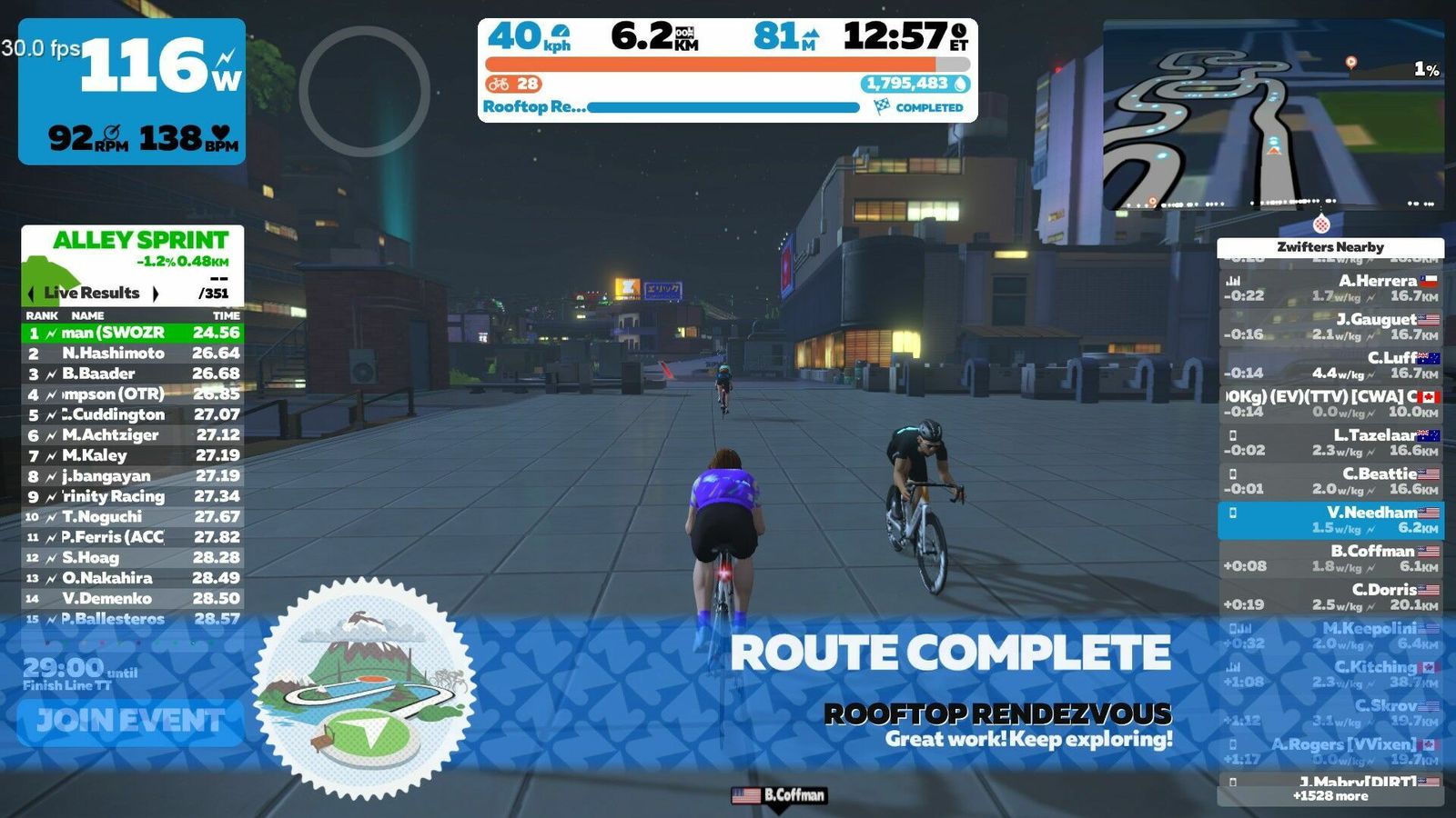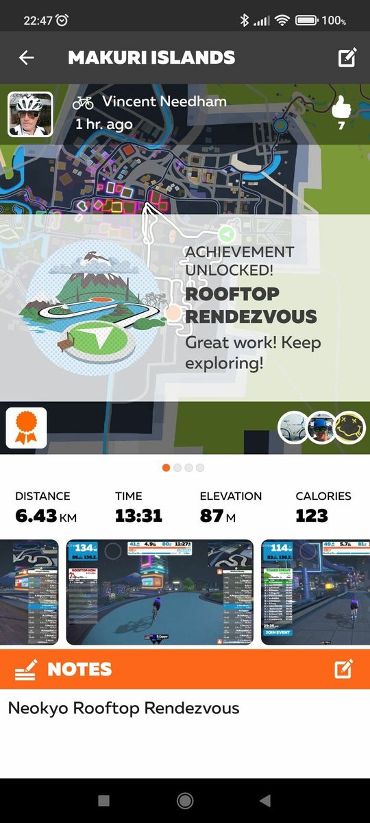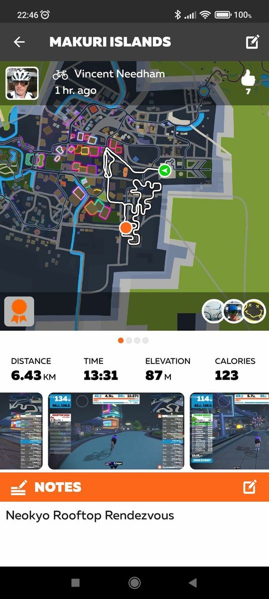 Zwift just dropped the "Neokyo" update today, so of course I had to use that for my warm-up before the Zwift Academy Tri Finish Line TT. It turns out the short course here is the one with the climbs! "Rooftop Rendezvous begins with a short lead-in from the Neo Arcade and up onto the tracks of the Neokyo Railway before crossing the start line of the actual circuit. Then you simply climb, descend, and repeat."