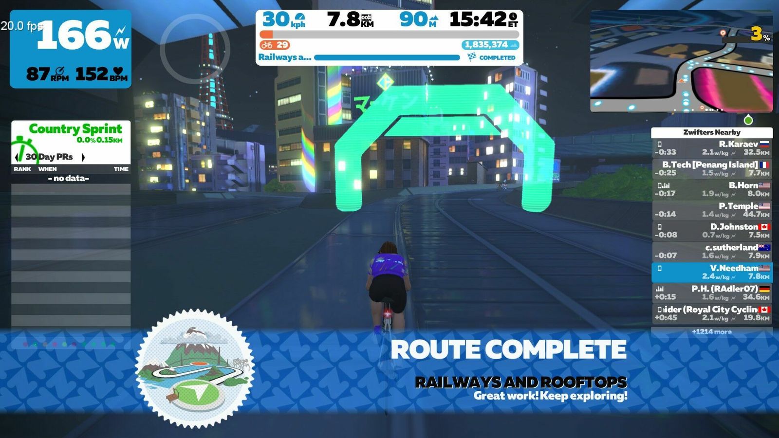 Another short route in Neokyo, but intense thanks to the moderately steep rooftop climbs and my unwillingness to shift off the big ring. Rode in new kit to a trance playlist.