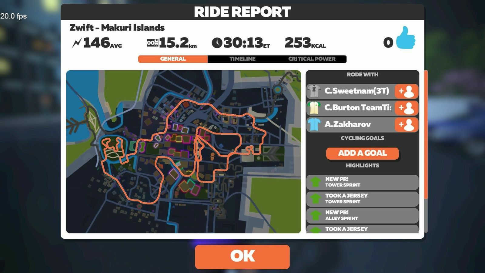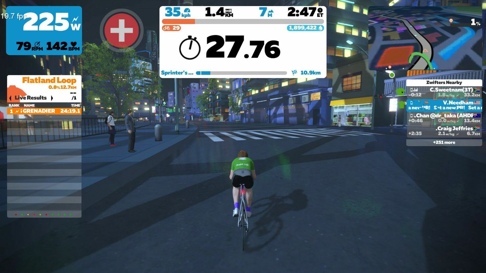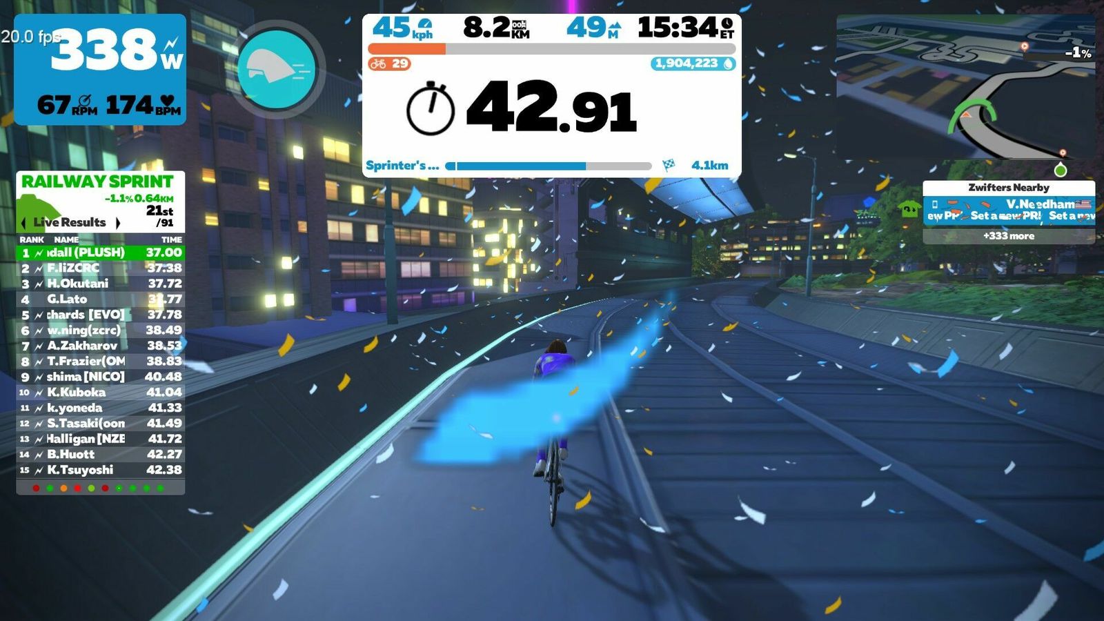 I didn't realize it had gotten this late. I intended to do a couple of short new Makuri routes, but one will have to do. That's the "Sprinter's Playground", a flat 12 km course with like four different sprints on it. Perfect for testing my new Favero Assiomas against the NeoBike! Really hammered some of these sprints to get some nice peaks in the data.