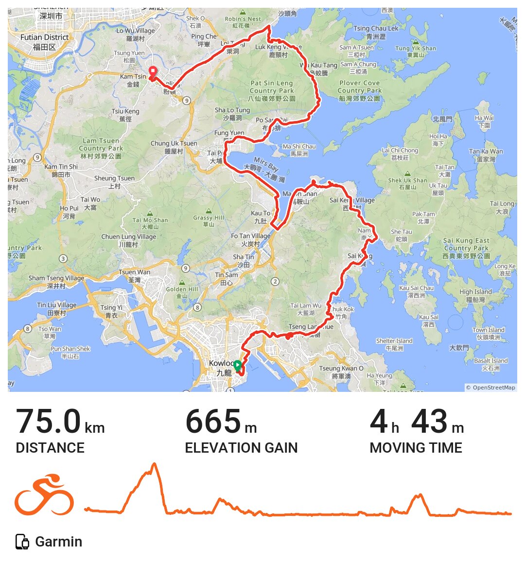 這次騎行是有幾個重要的任務、目的。首先是要去西貢給岳母送上柑桔,讓她制咸柑桔。接著是到泥涌的外展同學會,因為遲些時有扒獨木舟往澳門的活動,有贊助人來看望我們,並商量有關事宜,我是去增加人氣的。最後是要踩到屏山,到鄧公宗祠參加盤菜宴;但係各位看作業標題都見到,我是踩到上水結束騎行的。
