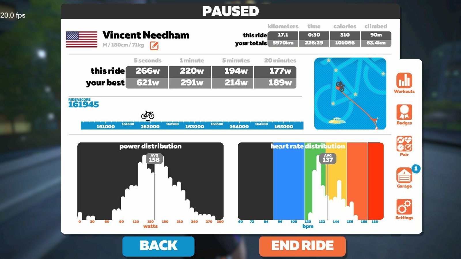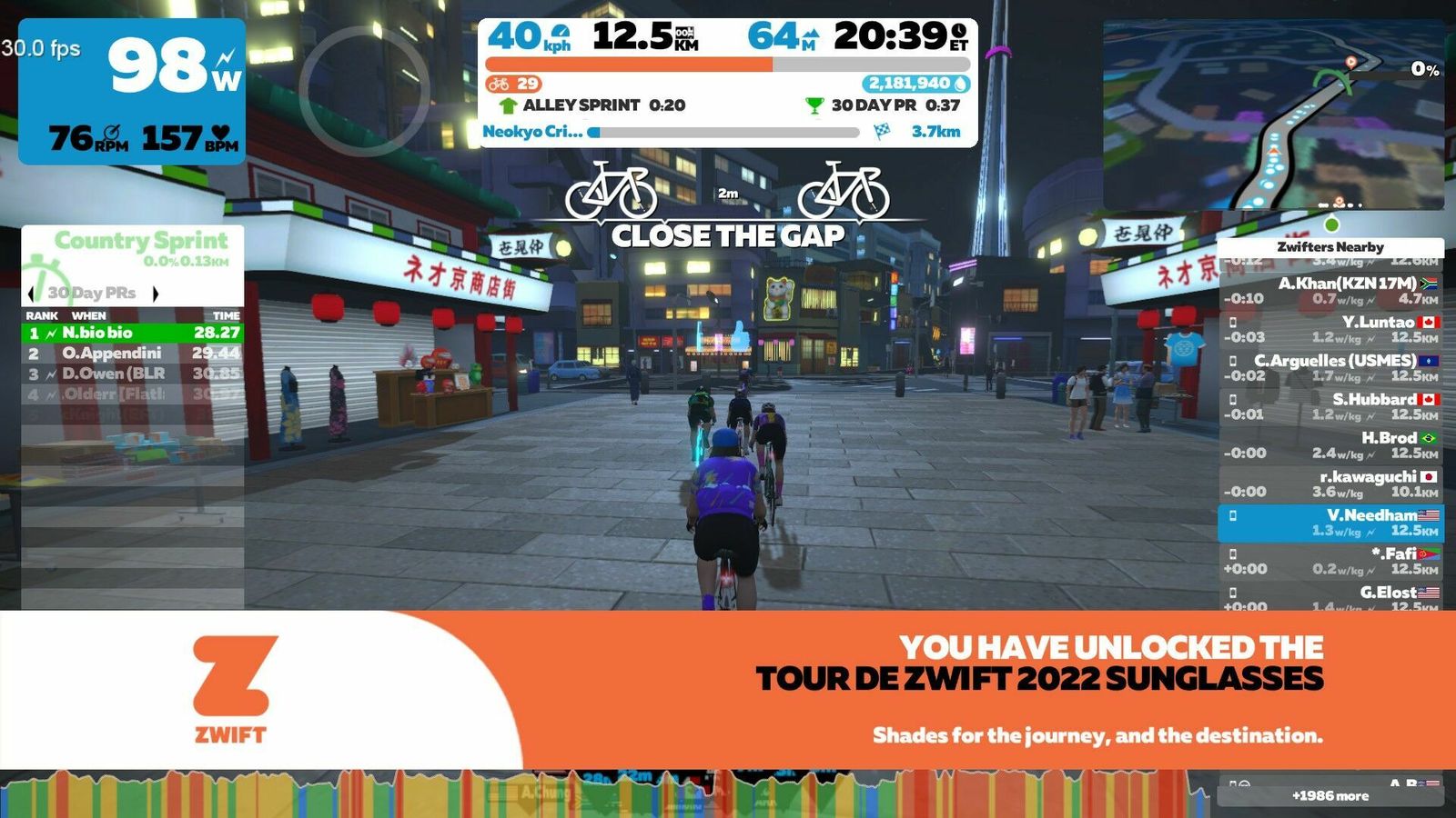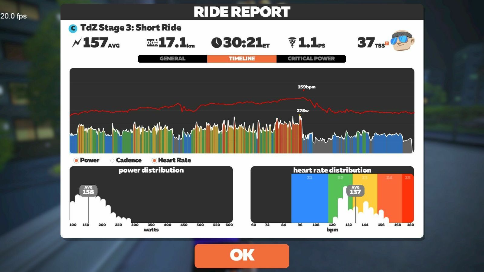 On tonight's stage of the TdZ we went "Round and Round" on the new Neokyo Crit Course. Lots of riders blobbing and taking advantage of the double draft, so it was a fast three laps for the official event. I did an extra lap to cool down and pad out the time and distance.