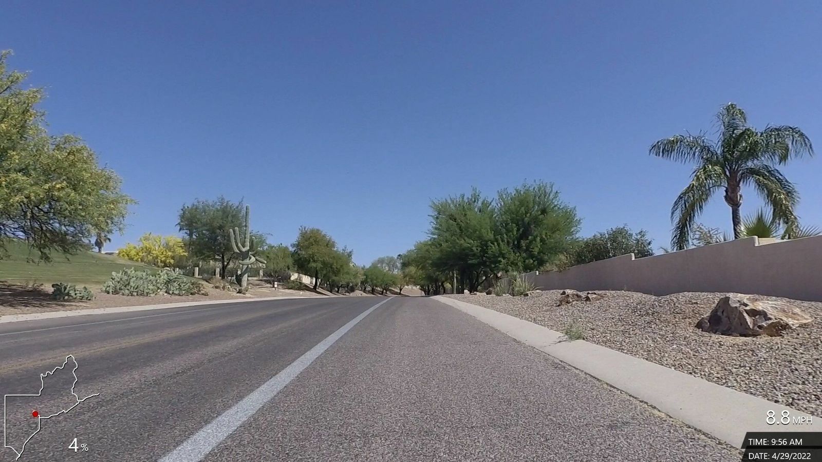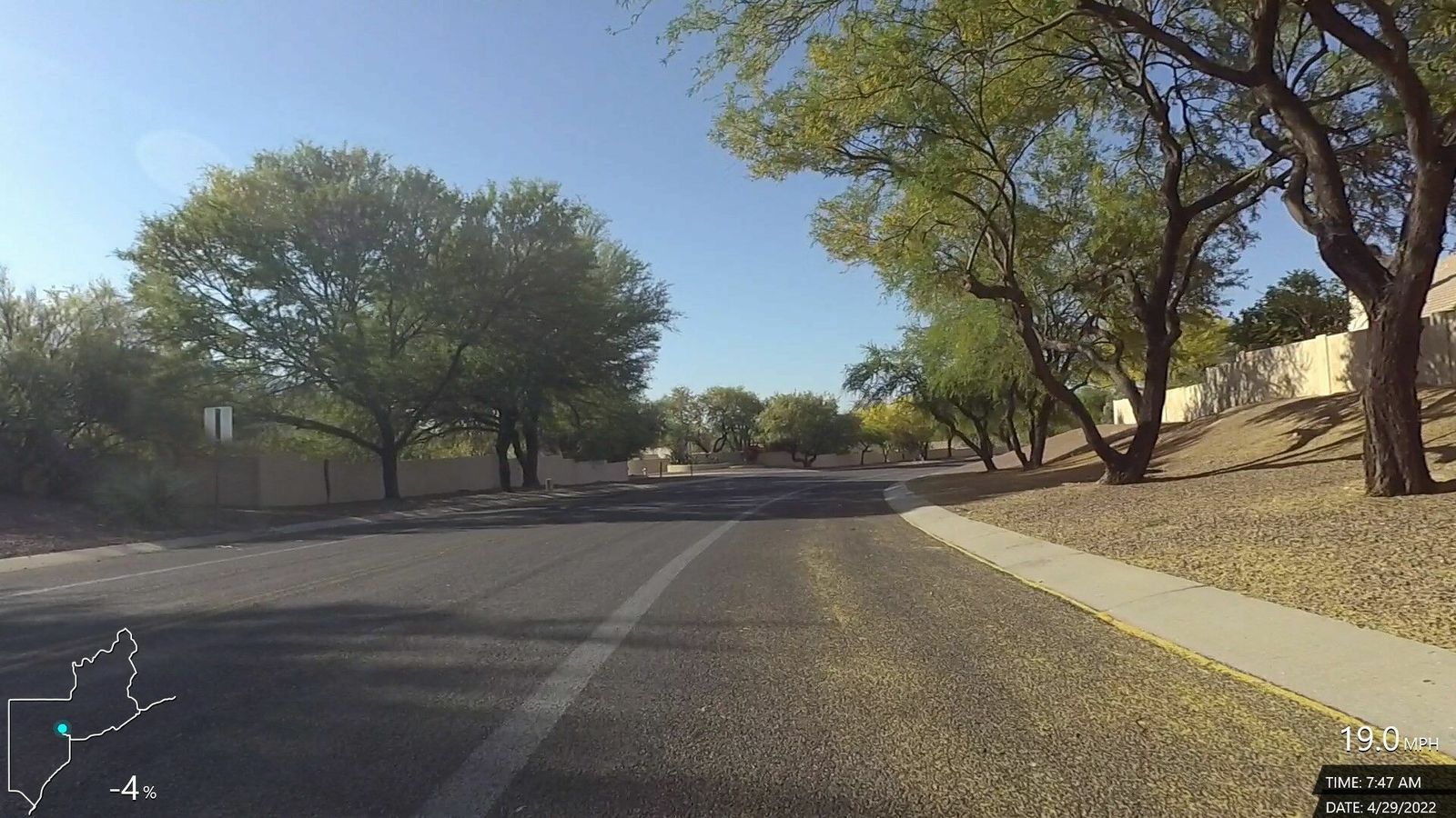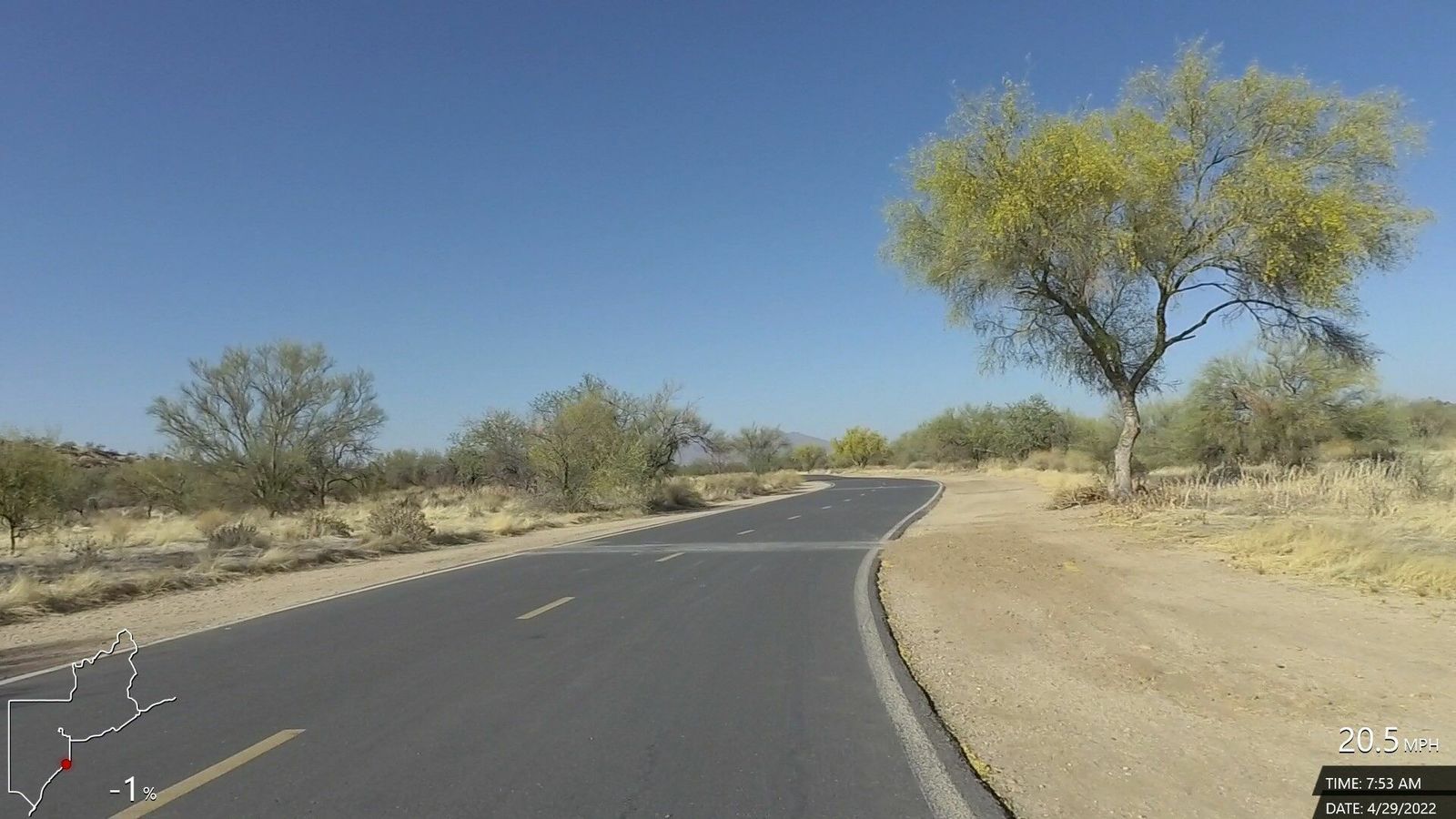 N'Emonda. Sunny, cool and comfortable, very little variable wind. New route (somewhat), rode up Magee and Thornydale, which was good but just a little sketchy section on T'Dale without a shoulder up near Tangerine. Good ride with decent speed and power plus some good climbing sections.