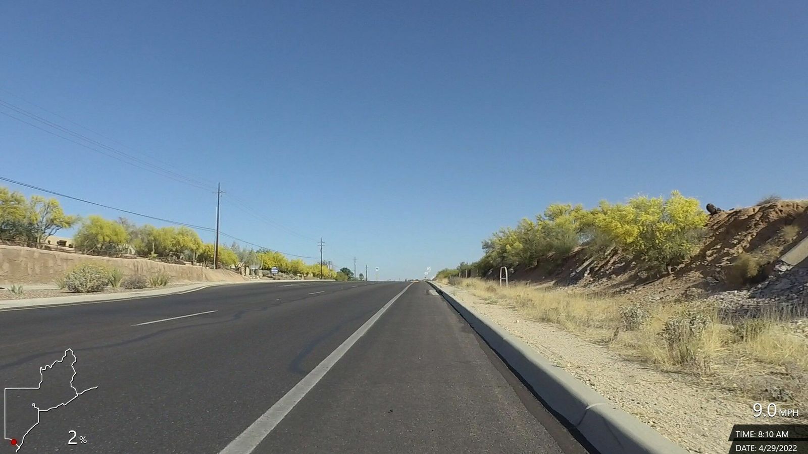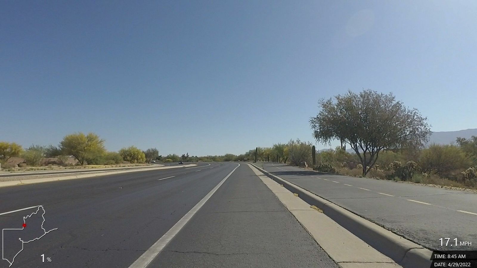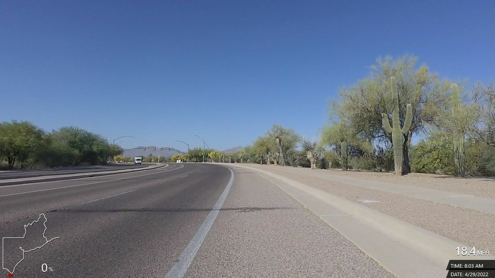 N'Emonda. Sunny, cool and comfortable, very little variable wind. New route (somewhat), rode up Magee and Thornydale, which was good but just a little sketchy section on T'Dale without a shoulder up near Tangerine. Good ride with decent speed and power plus some good climbing sections.