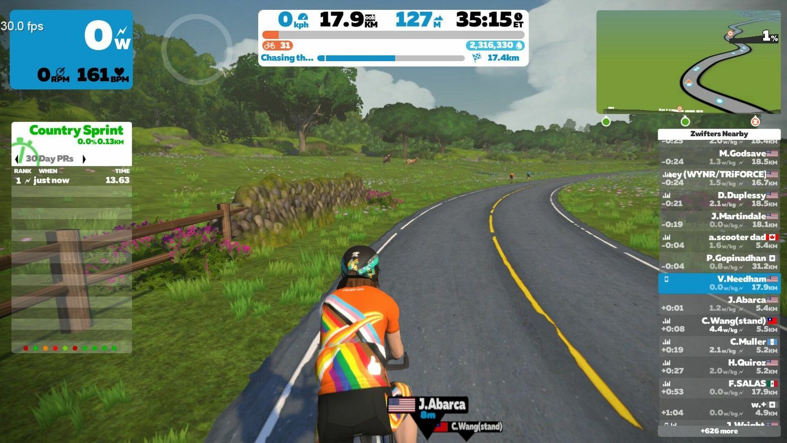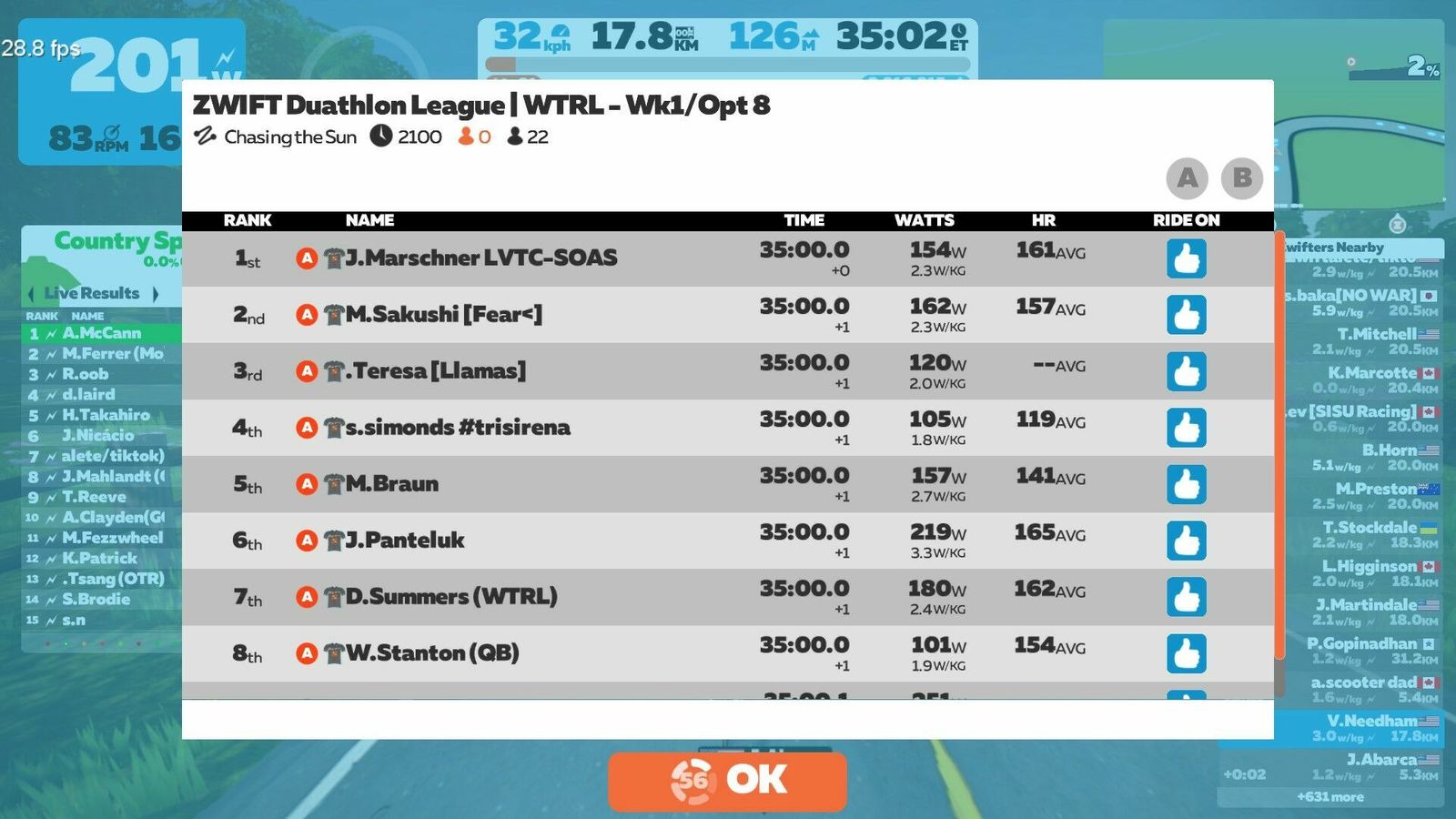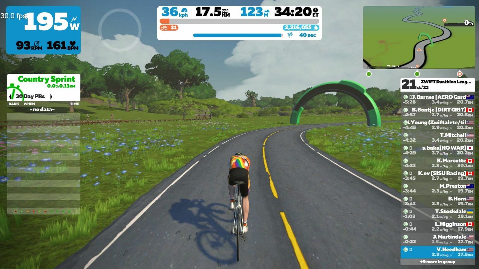 Not a bad debut for a slow, out-of-shape old man. This route had the rooftop climb on it and the option to ride a non-TT bike, though, and if that was announced I missed it. So I carried my heavy-ass SpeedMax with my deep DT Swiss wheels up over Neokyo. Otherwise I was well-prepared and things went smoothly. Ate one Gu at the start and another in the middle. Had a bottle on both machines. Had my YouTube SuperMix on both stations.