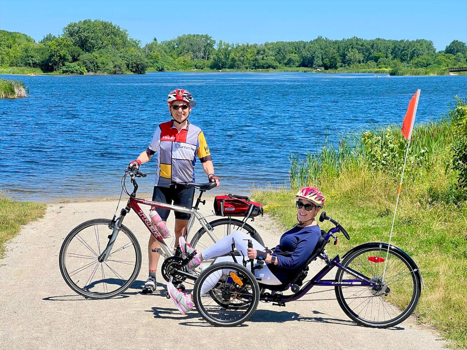 I accompanied Tammy on her trike ride to the Mallard Lake Trail, the Greenbrook School grounds, the long bridge trail, and back home.