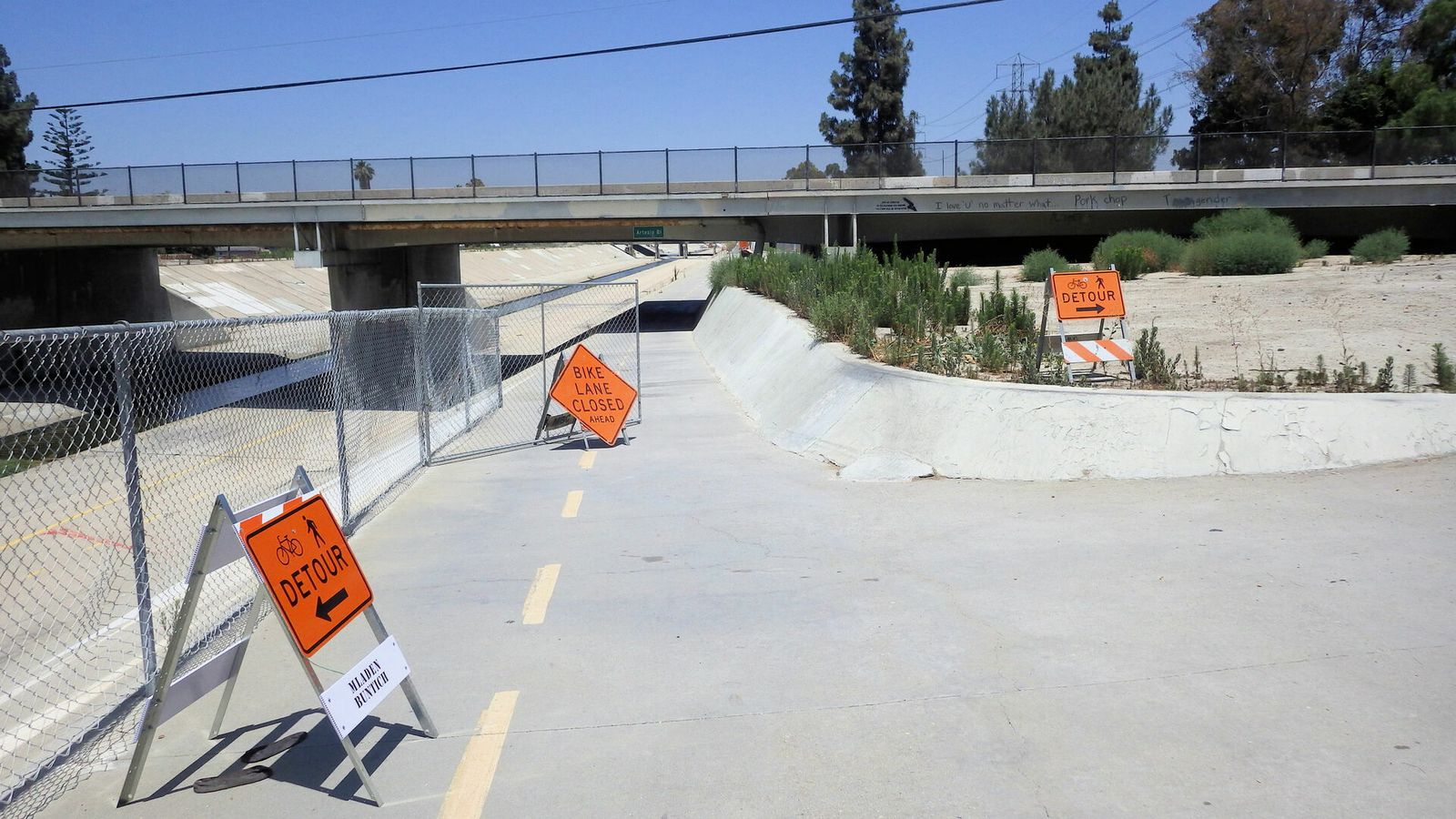 San Gabriel River construction has the Bellflower section of the path closed