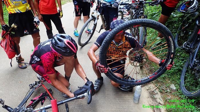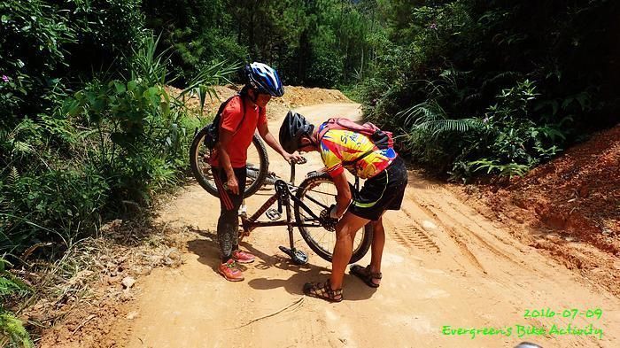 越野路況雖然是以落為主,但係前段也有包含是上的,是有上有落的單行道,之後就是連綿不斷的碎石機耕路,高速飛馳而下,非常考驗膽色、技術和單車的堅固程度。其中比較黑的是 popo,她爆呔四次。